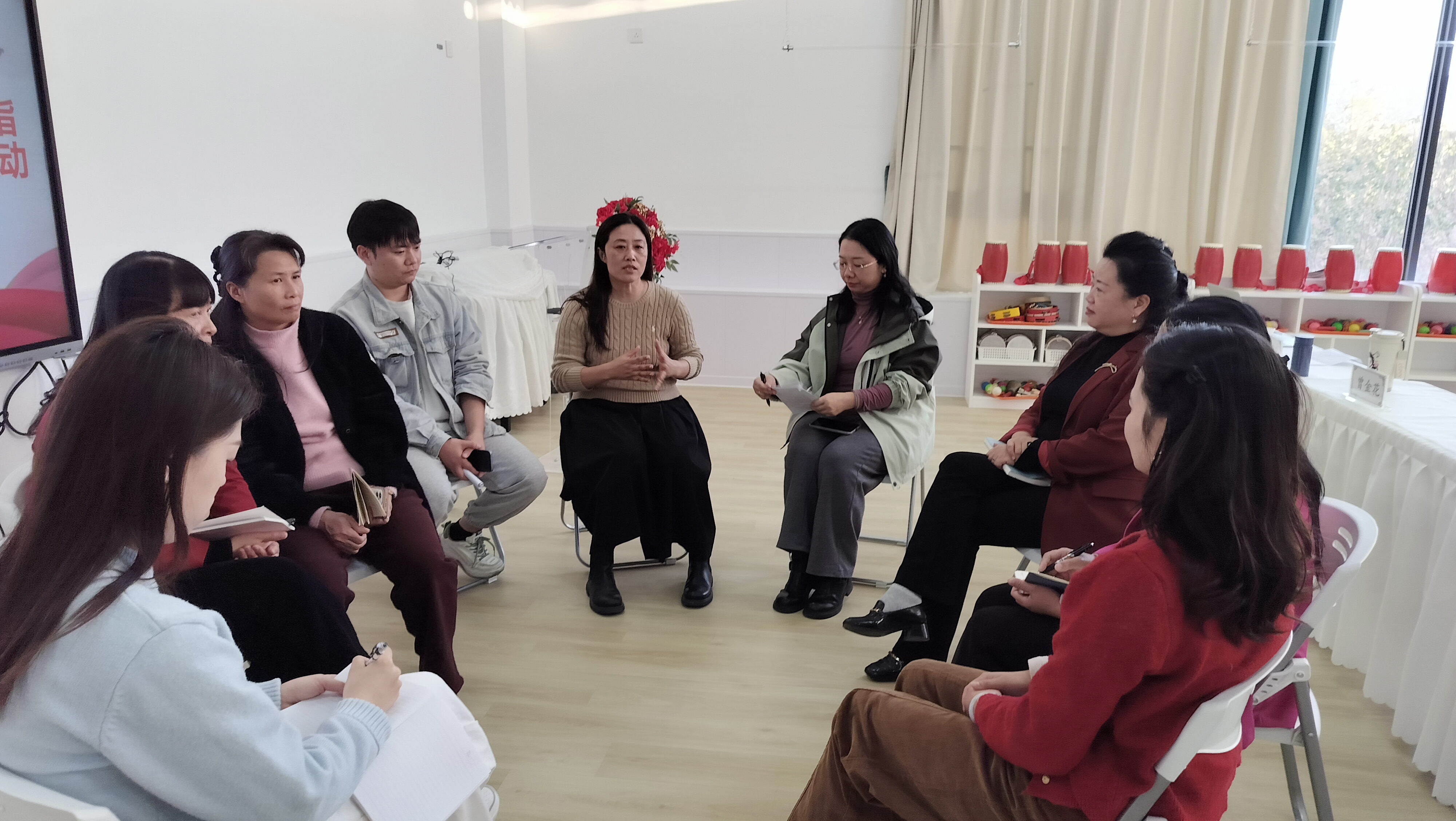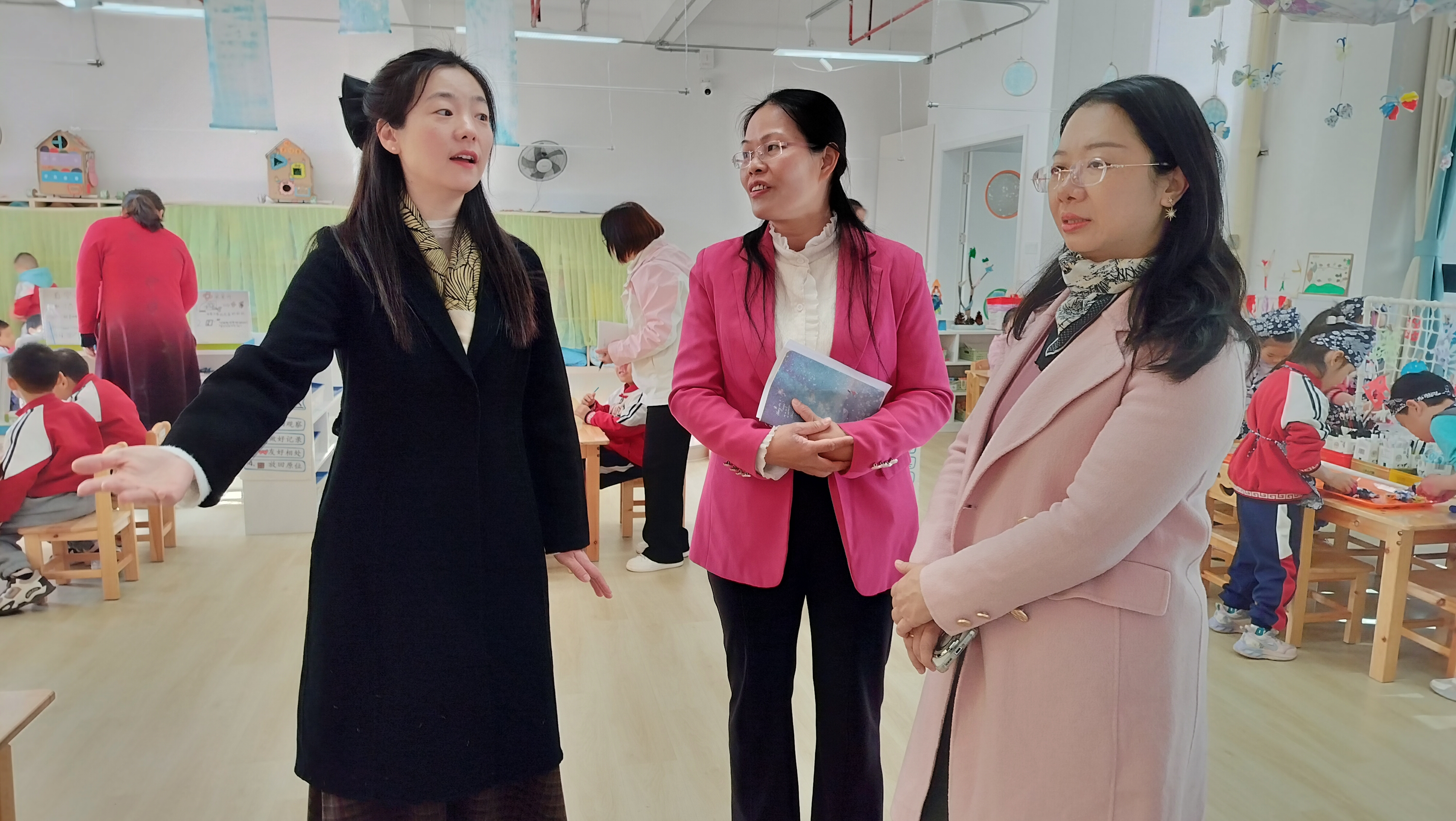 座谈交流环节,工作室团队与两所幼儿园的管理者、教师围绕“智慧规范管理落地”“红色课程深化”“园本课程建设”等议题展开研讨。结合工作室在“智慧保教+数字化管理”方面的研究方向与成果,团队建议园所适当巧妙结合数字化工具,支持幼儿学习,提升管理效能。