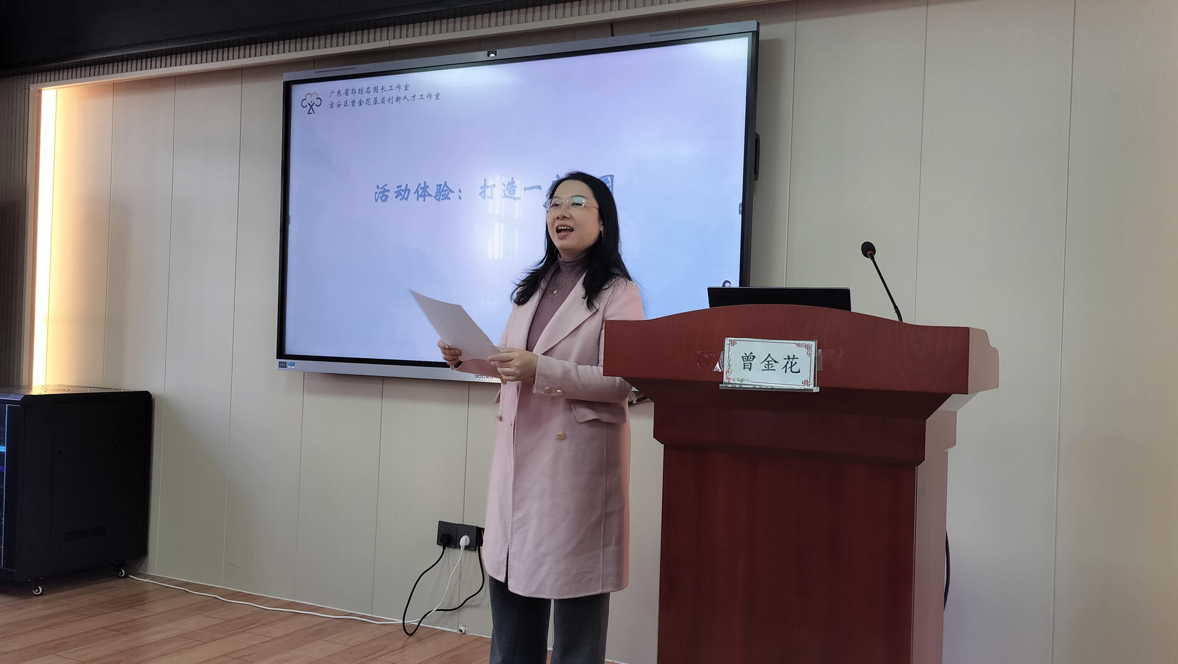 工作室学员、罗湖区清秀幼教集团金鹏幼儿园教学副园长胡彦丹以《户外自主游戏的探索与实践》为题,结合丰富案例解读自主游戏中的教师支持策略。工作室学员、宝安区西乡街道中心幼儿园园长曾金花则分享《幼儿园团队建设与教师专业成长》,通过互动问答、情境分析,激发管理者对团队赋能与教师发展的深度思考。两场分享既有理论高度,又贴近实践需求,为龙川幼教人提供了可借鉴、可落地的专业指引。