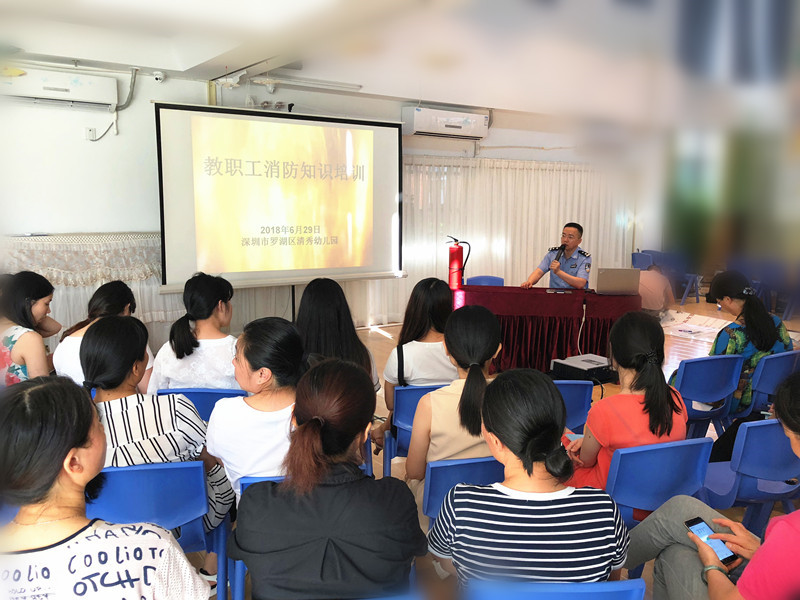 根据教育系统2018年安全教育月和安全生产万里行通知精神的相关要求,6月29日下午,我园特安排全体教职工进行“消防安全知识培训”活动,并专门邀请翠竹派出所周警官为大家进行此次培训。下午4点,活动正式开始!周警官从如何防范、发生火灾后如何应急、如何扑灭初起火灾等方面为大家进行了培训...more发布日期:2018-06-29 浏览量:714