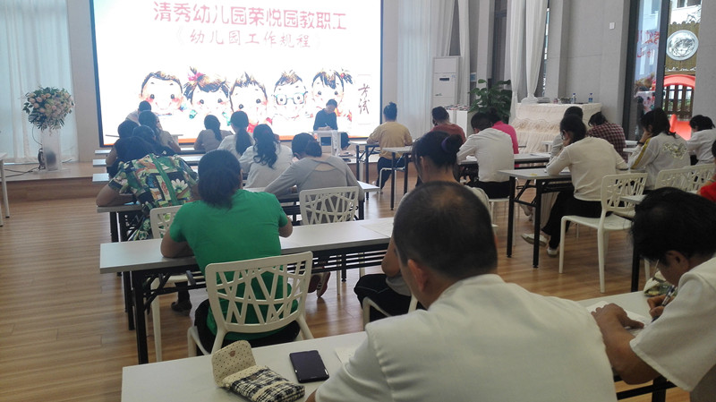 老师是孩子成长路上的合作者、支持者、引导者,是孩子学习的榜样。教师育人,必先育己!有关专业理论,需要学而时习之,需要不断地在教学实践中去落实,在反思中改进教育水平。11月10日,清秀幼儿园进行了一场关于《幼儿园工作规程》的学习测试,全体教职工均参加。园长高度重视,不仅亲临现场,还...more发布日期:2017-11-10 浏览量:1141