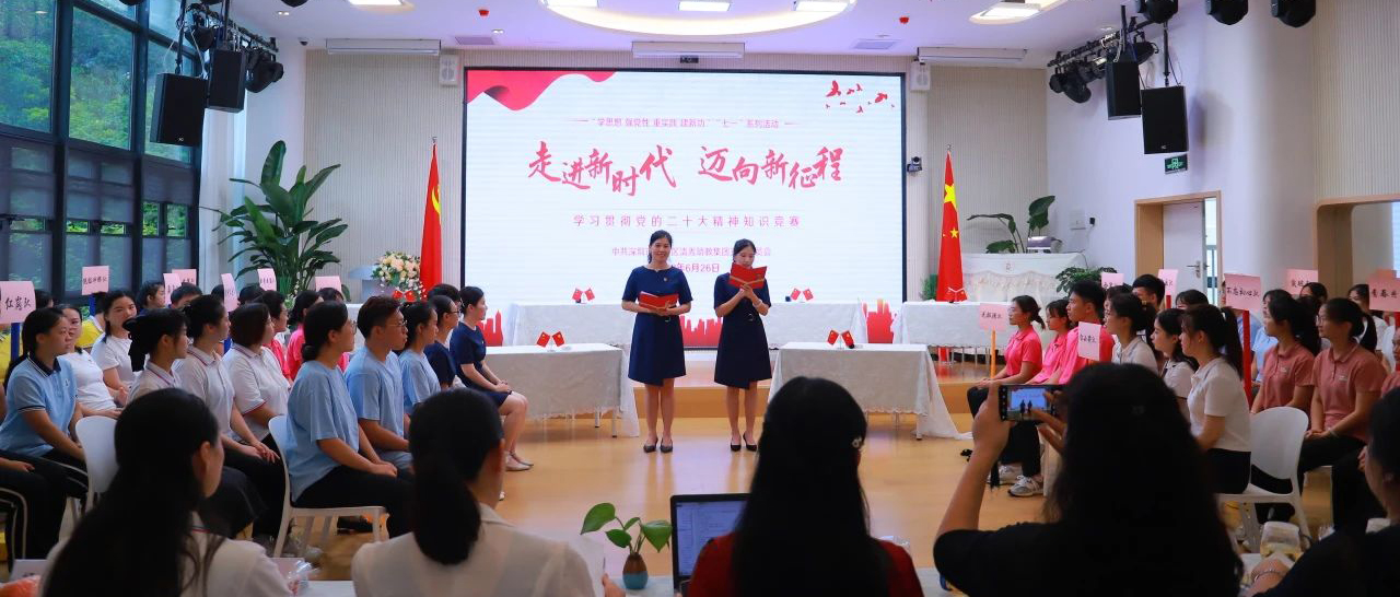 为了深入学习贯彻习近平新时代中国特色社会主义思想,引领教职工坚定信心跟党走,进一步巩固、检验党的二十大精神学习成果,罗湖区清秀幼教集团党支部于清秀金鹏幼儿园开展了“学思想 强党性 重实践 建新功”“七一”系列活动暨“走进新时代,迈向新征程”学习贯彻党的二十大精神知识竞赛活动...more发布日期:2023-06-28 浏览量:512