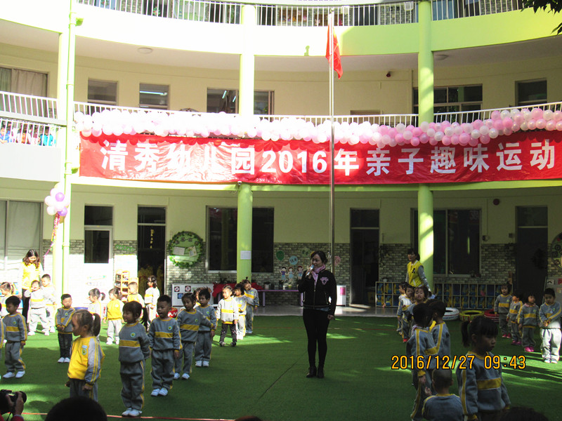 运动使我们健康,游戏让我们快乐。2016年12月27日(星期二)清秀幼儿园小班级亲子趣味运动会举行。本次运动会以“我跑我跳我健康,我玩我做我成长”为主题拉开了帷幕。