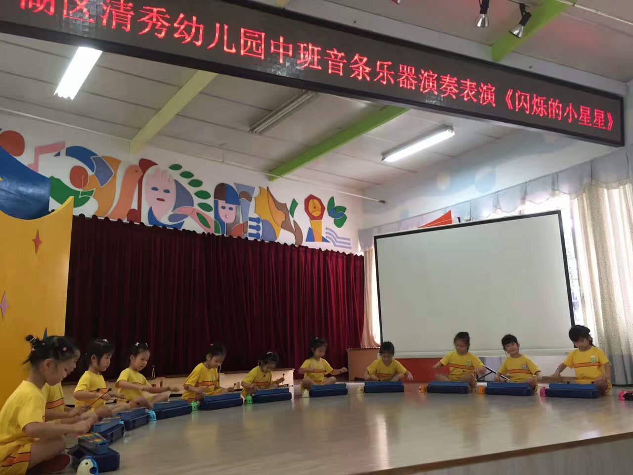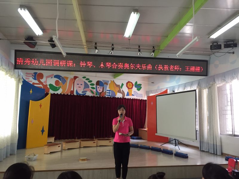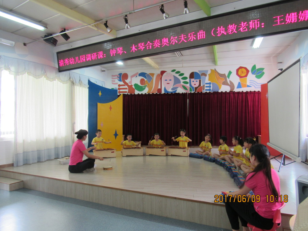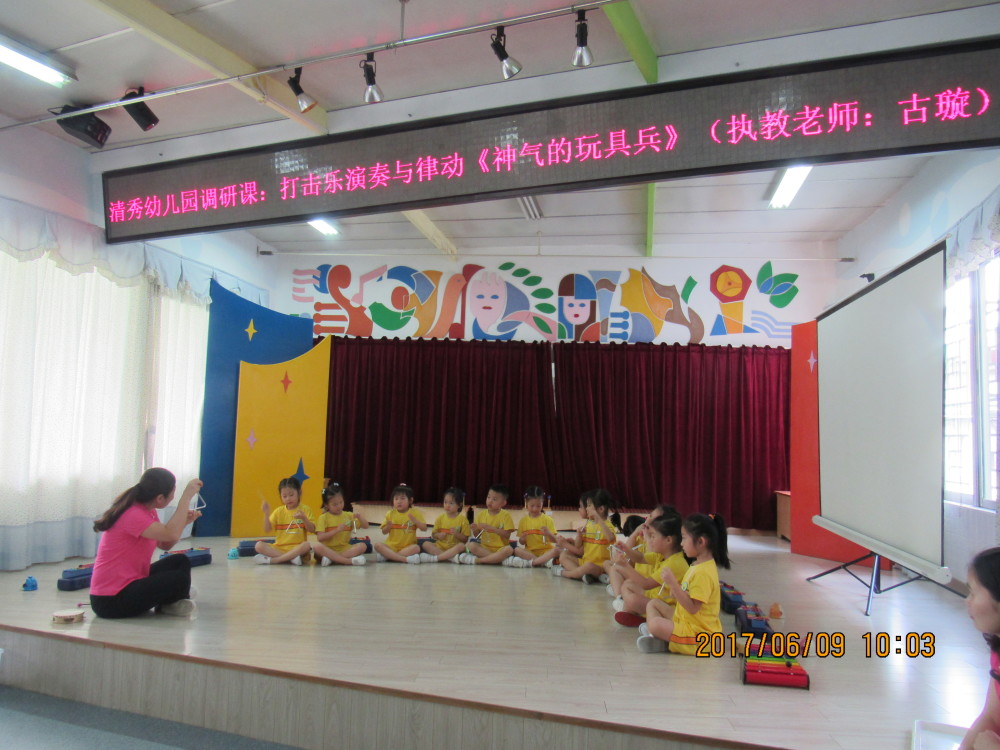 2017年6月9日上午,清秀幼儿园迎来幼儿园音乐教育研究项目课程园及清水河片区姐妹园近90位老师,观摩幼儿打击乐器演奏教学活动并进行音乐教育研讨。