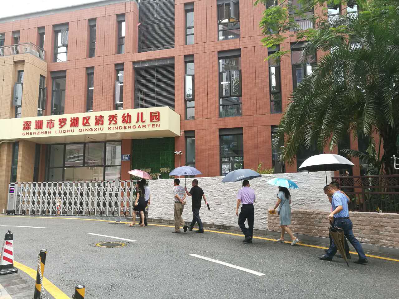 罗湖区清秀幼儿园荣悦分园即将开园,针对小区车闸位设置在幼儿园正大门相距1米处,路面主道距离幼儿园大门只有30公分的安全隐患现状,2017年9月5日下午,罗湖区教育局教育二科李米莎科长、安办杨海波科长、翠竹街道办事处党工委刘承副书记、曾建斌副主任,街道平安建设部卢龙江副部长、木头龙工作站杨柳波站长、罗湖区交警大队东湖中队高庆阳副中队长及合正荣悦府小区管理处汪青主任来到清秀荣悦分园进行现场协调解决。