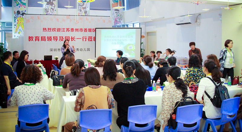 11月29日上午,江苏泰州市姜堰区教育局领导及园长一行40余人莅临清秀幼儿园(德弘总园),进行为期半日的跟岗研修。