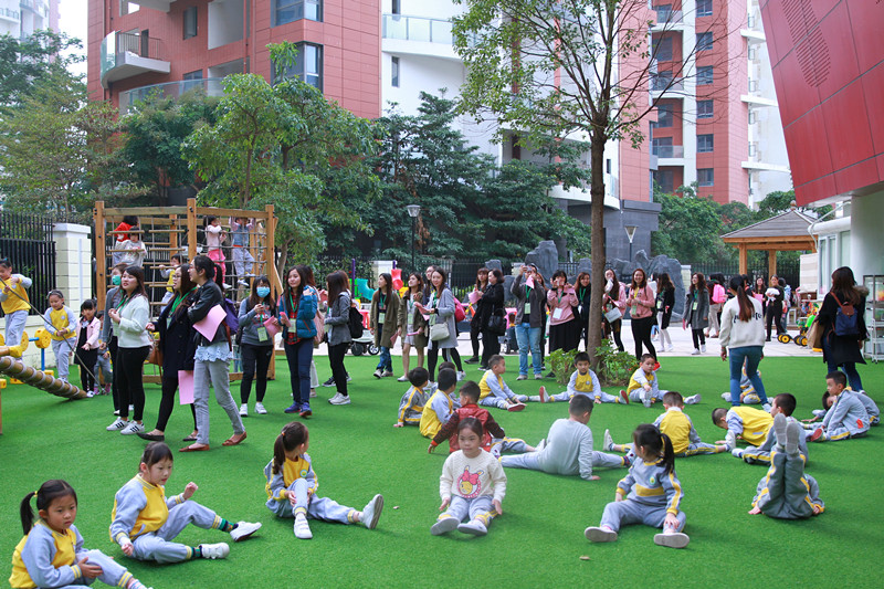 此次参观,主要针对我园的户外环境和户外活动。参观过程中,香港浸会大学的老师和学生们均对我园丰富的户外游戏材料和孩子们游戏的自主性赞叹不已,也深深被孩子们欢乐的活动氛围所感染。