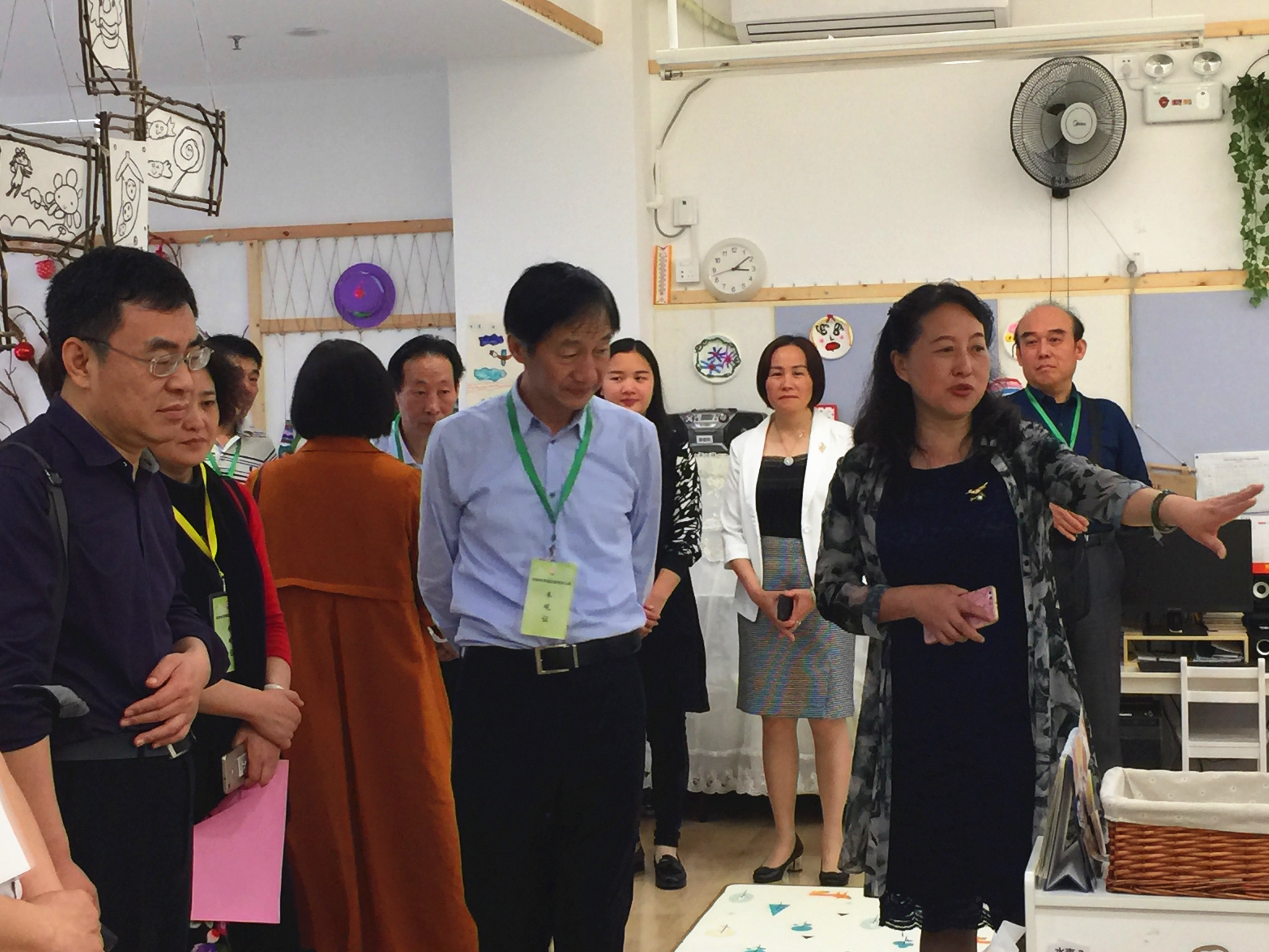 在参观过户外环境以后,郭园长又带领大家参观各班的班级环境,并详细向大家介绍了我园教师从孩子们的年龄特点和兴趣出发,对班级环境进行的有目的、有准备、有特色的布置,得到了大家的一致认同。