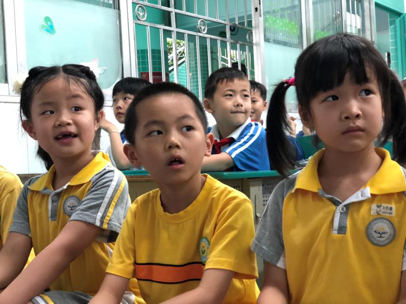 随后,在螺岭小学老师们的热情带领下,大班幼儿分成三组有序进入一年级三个班级深入体验小学课堂生活。幼儿园的教育活动是以游戏为主要活动形式的,寓教于乐,生活也比较轻松。小学则是以课堂学习为主要活动形式,课堂学习的时间较长,有严格的纪律。课堂上,哥哥姐姐认真听讲、积极举手、专心学习的情景给大班幼儿们留下了深刻的印象。通过观摩一年级小学生的上课过程,幼儿对小学生学习有所了解,激发了幼儿们进入小学的愿望。