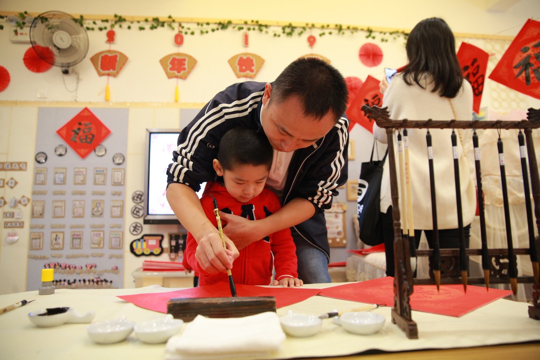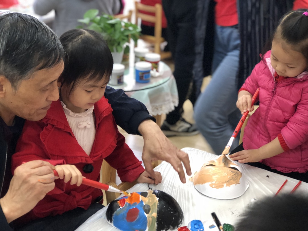 活动当日,在班级老师强调好活动规则以及注意事项后,活动便正式开始了!有趣的剪纸、皮影戏、画脸谱、写福字、画风筝等活动,让孩子们其乐无穷,乐趣不断!
