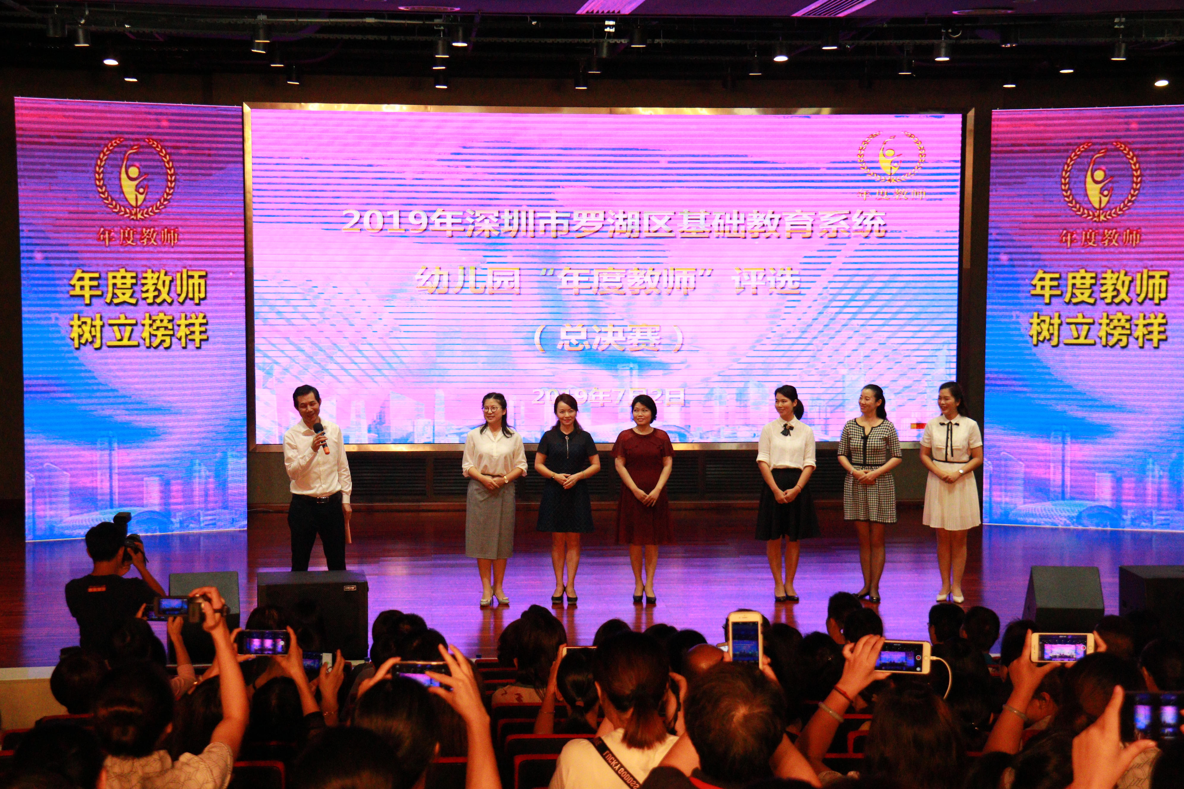 7月2日下午,2019年罗湖区基础教育系统幼儿园“年度教师”决赛如期举行,6名“年度教师”候选人在罗湖高级中学初中部现场展开角逐。深圳市教育局王水发副局长、罗湖区教育局党组书记宾华出席并就活动发表重要讲话,罗湖区教育局副局长郭天明、调研员尹先明、副调研员杨文君,深圳数位学前教育专家,人大代表、政协委员等出席了活动现场。