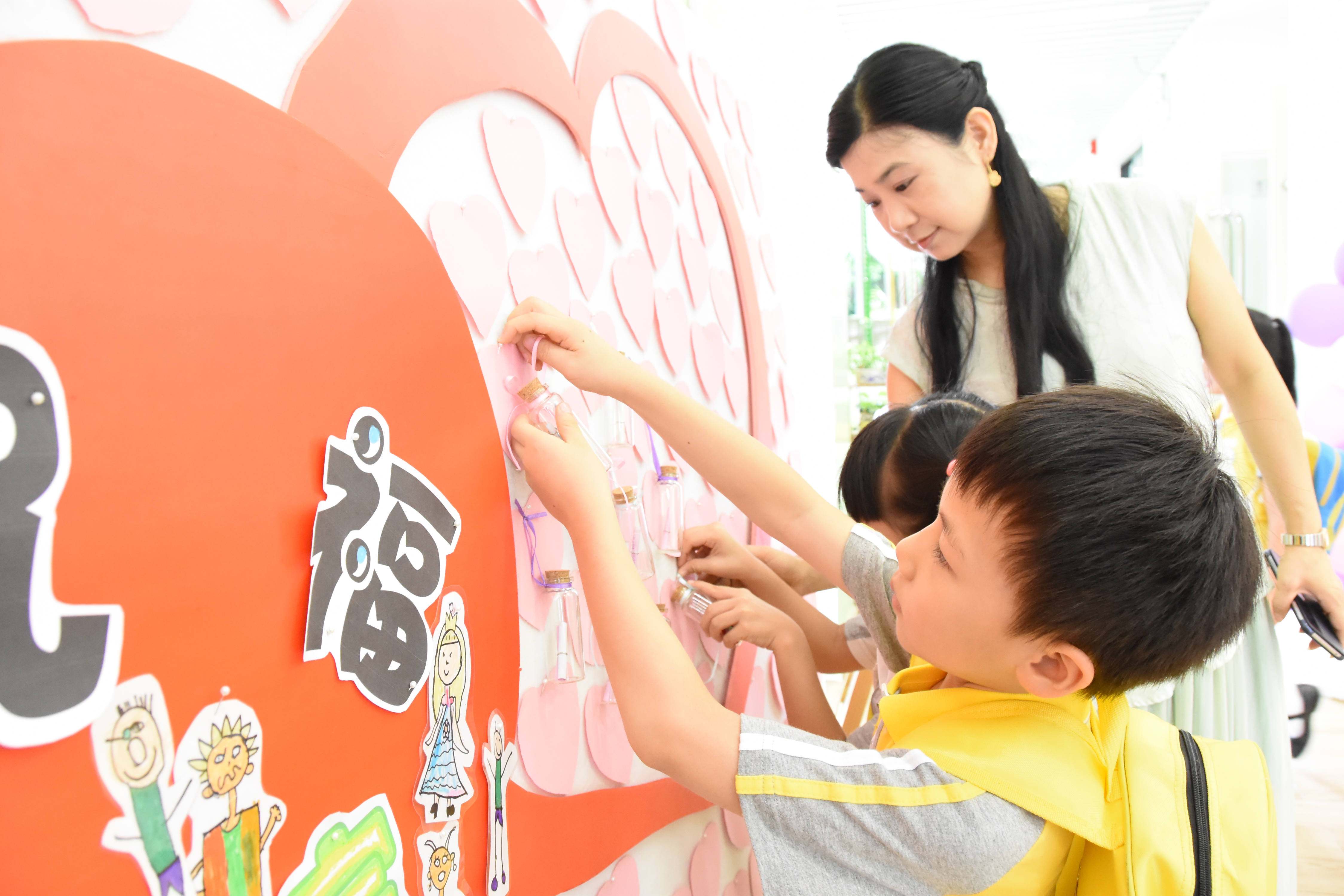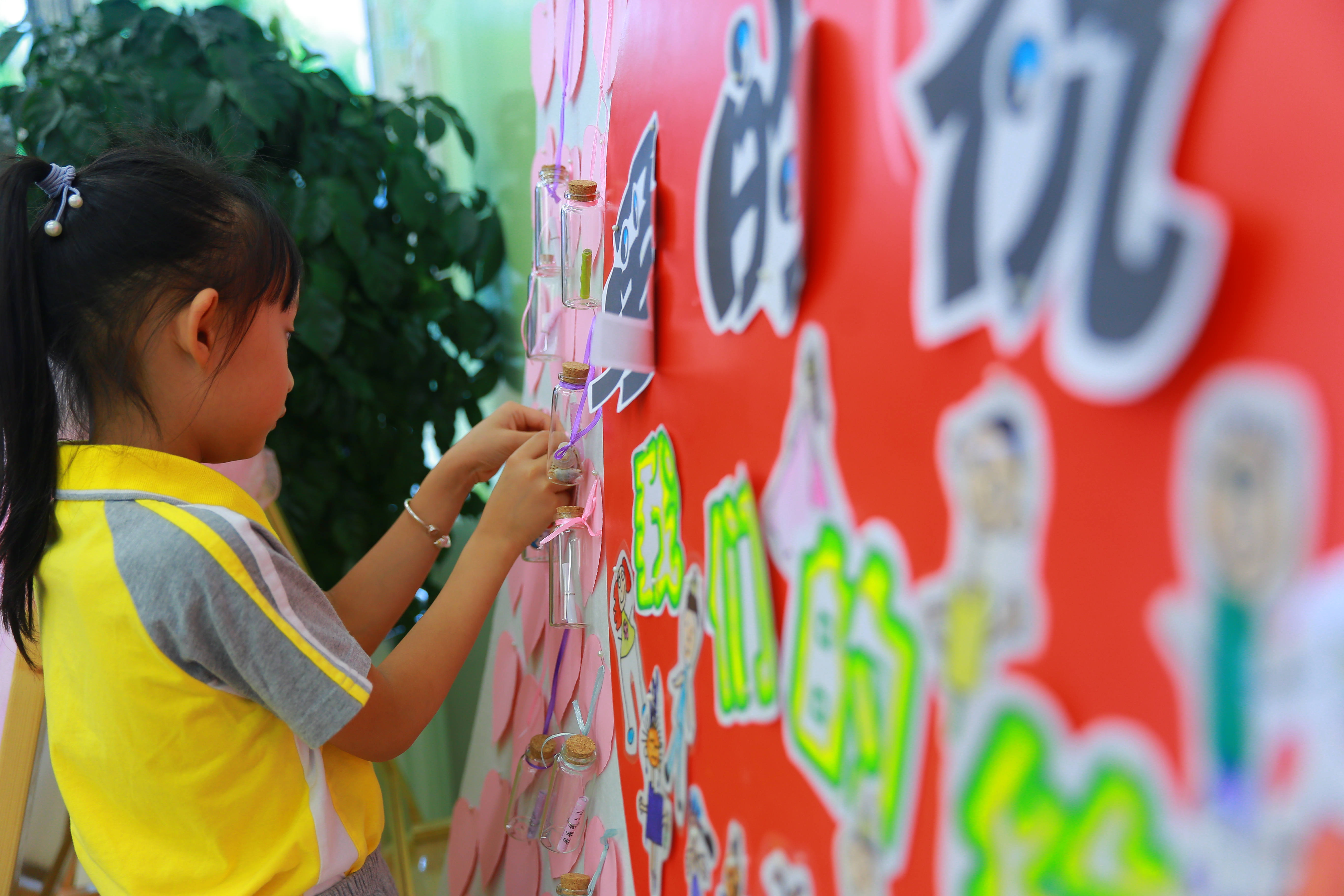 孩子们用稚嫩的画笔描绘自己的梦想,记录下自己长大后美好的愿望,将画纸卷起,用丝带系好制作成“时空胶囊”郑重地将自己的梦想投放到许愿瓶中。孩子们的梦想从这里起航,让我们相约15年后,让我们共同为梦想努力!