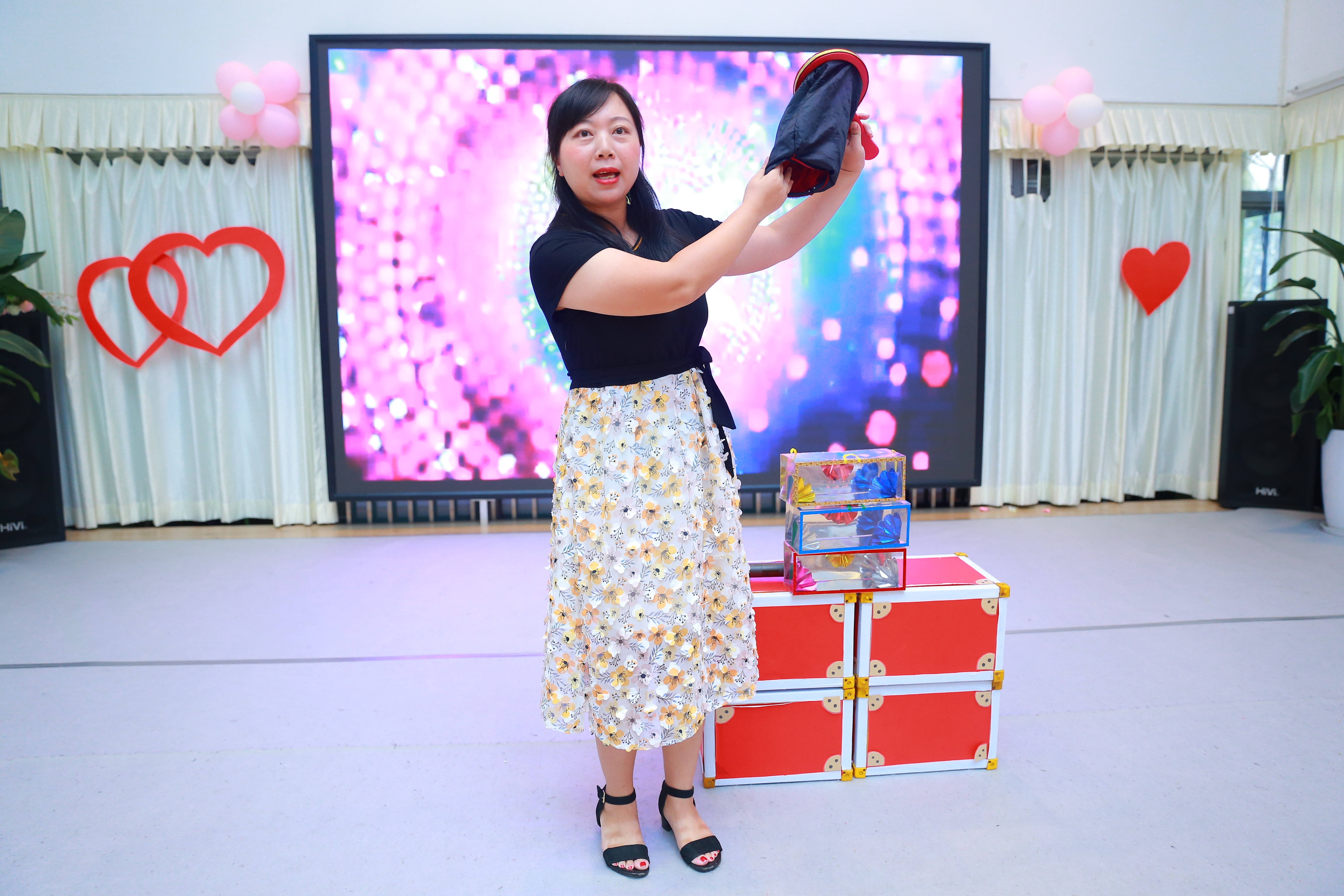大三班的谭智薇妈妈给毕业班孩子们带来的魔术口袋表演,现场掀起一片高潮,让我们感受到生活处处充满惊奇。