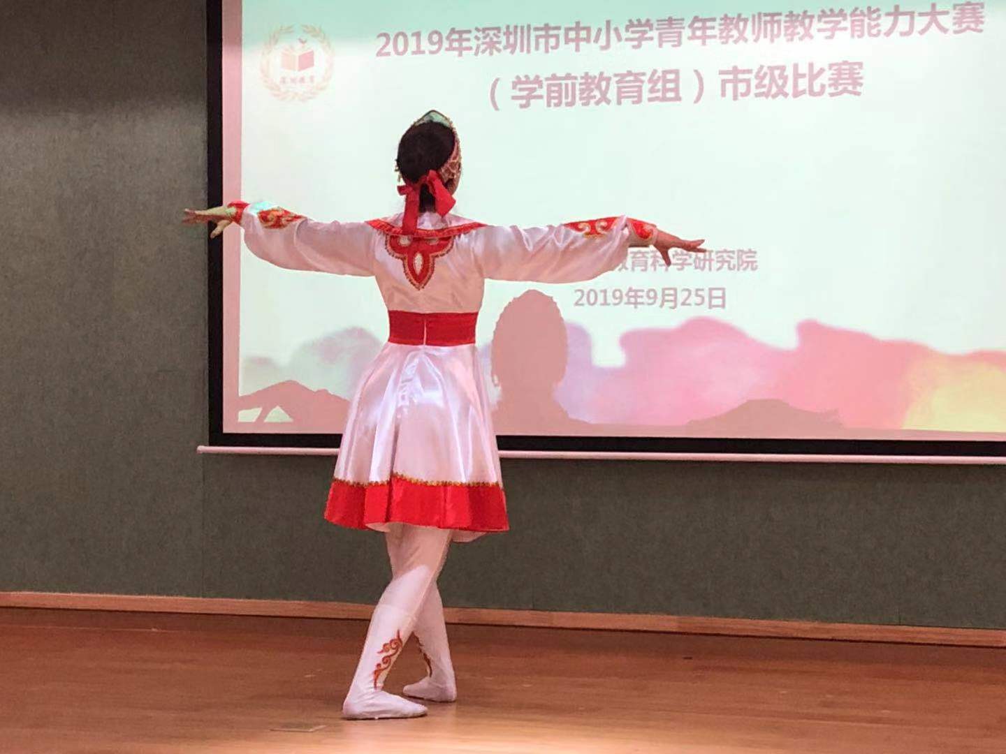 本届幼儿园青年教师教学能力大赛分两天进行,并围绕《3-6岁儿童学习与发展指南》、教师基本功、观察与分析能力等进行说课、抽题答辩、才艺展示、活动观察与分析,全方面考究参赛教师的综合教学能力。 姗姗老师在比赛过程中从容镇定,经过第一天说课、答辩、才艺展示三个环节的角逐后成功晋级决赛。在活动观察与分析环节中,姗姗老师用心观察、细致记录,在分享与答辩环节中有针对性、多维度地结合案例进行分析,获得评委们的一致认可。