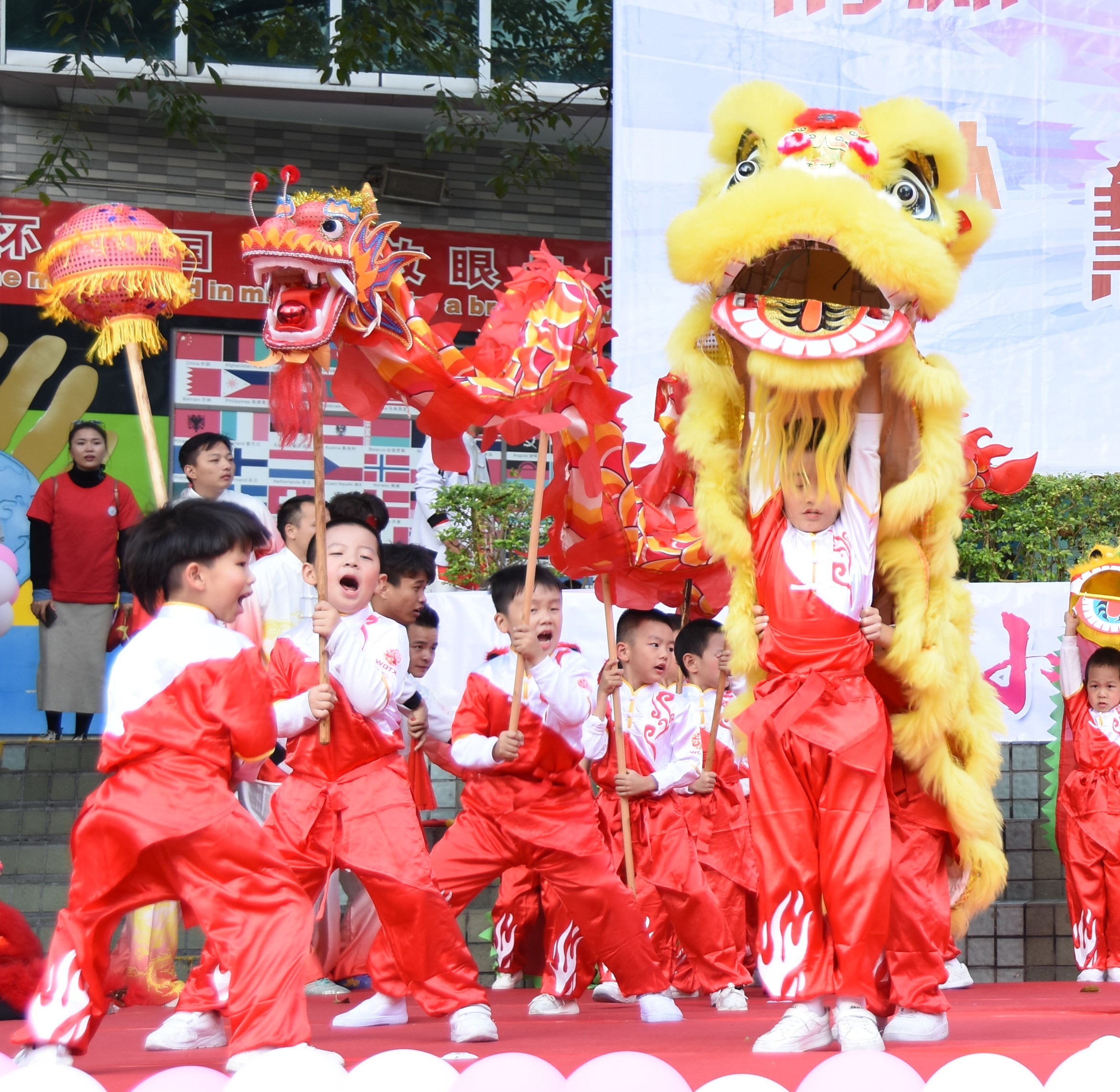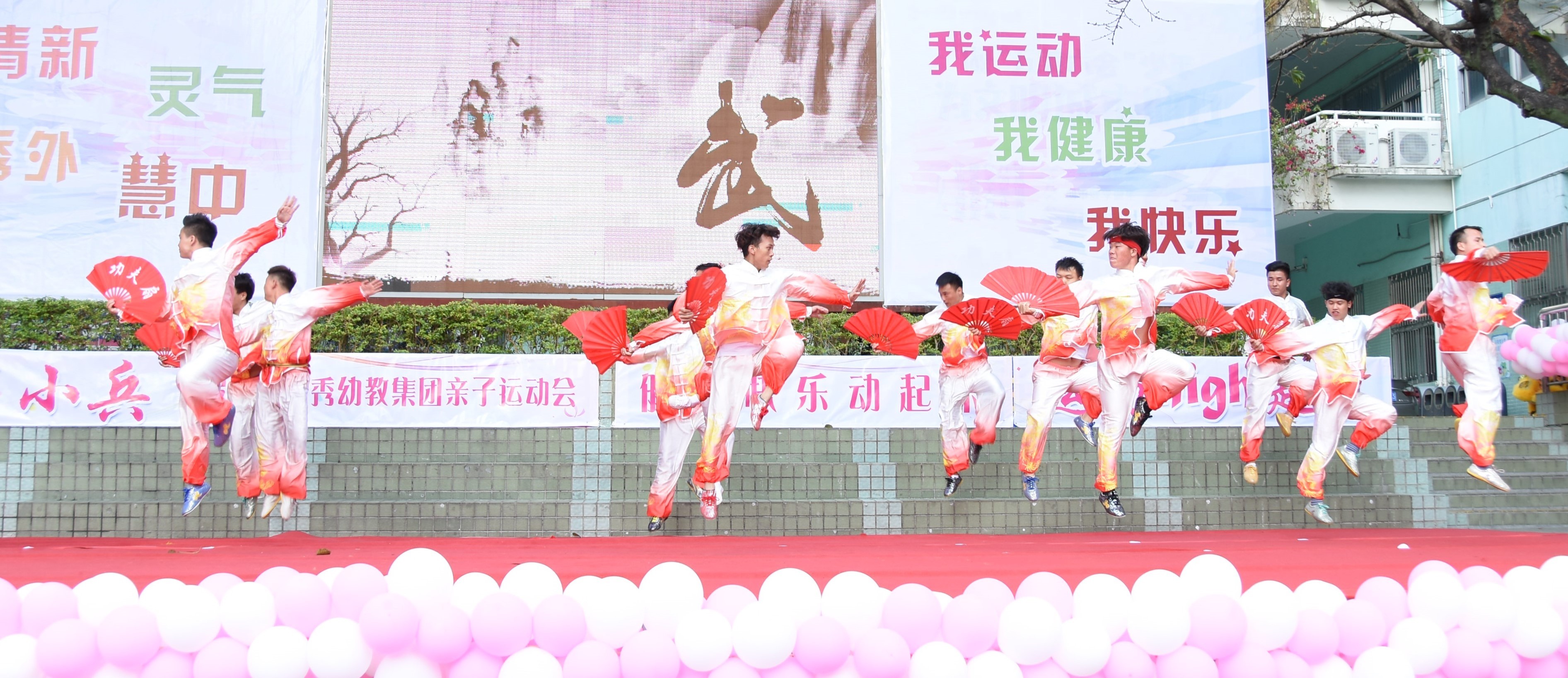 运动会上精彩纷呈。来自德弘及荣悦幼儿园的幼儿、家长、老师们通过舞龙舞狮、武术、剑术、拳术等多张方式向大家展示了清秀的运动精神和风貌。运动会通过“大兵带小兵”的方式,让家长协同幼儿通过将国防教育与运动相结合,家长、孩子们在活动中体验军中生活与运动的同时也通过这特殊的方式再次向新中国成立70周年献礼。