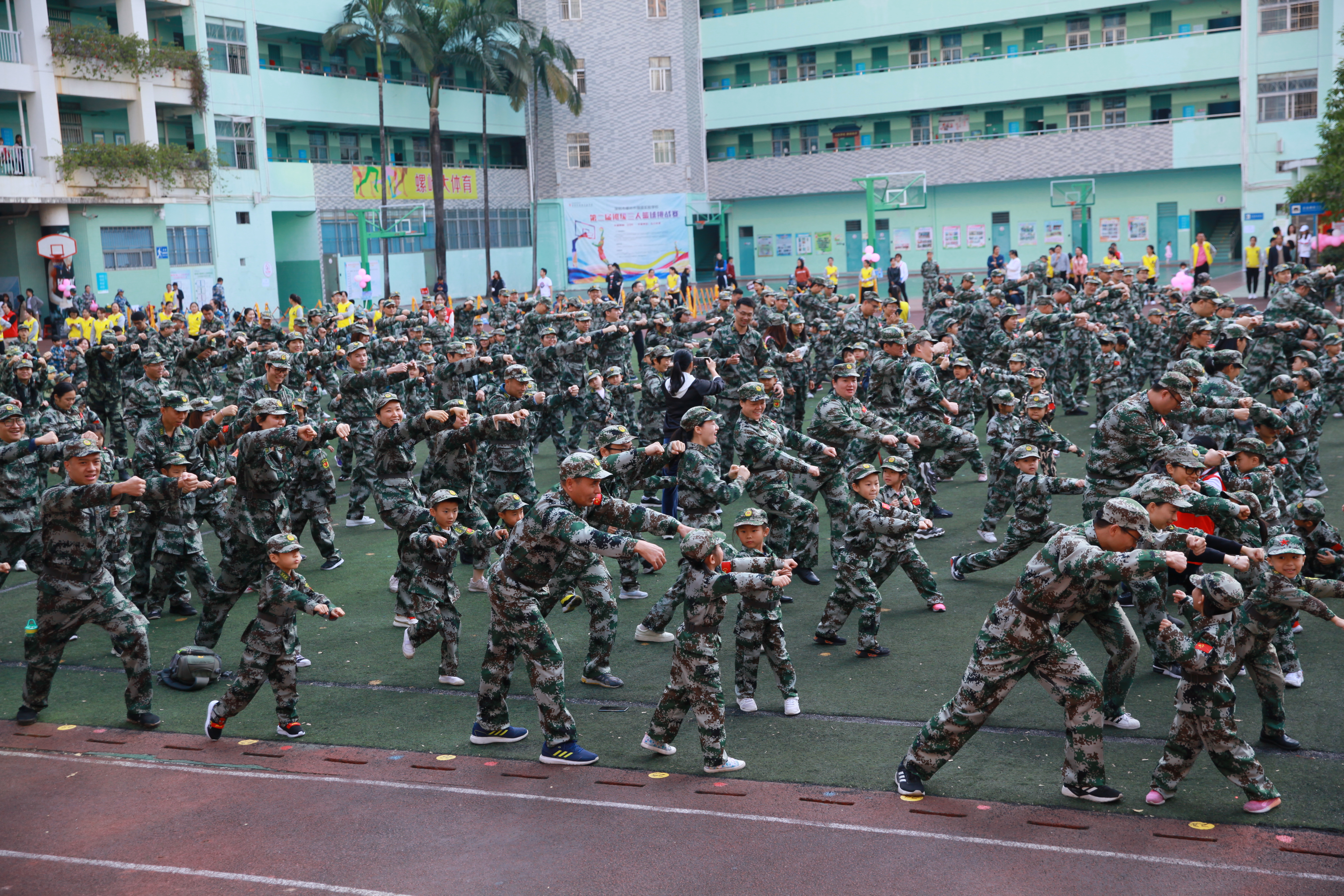 12月14日上午,罗湖区清秀幼教集团于螺岭小学圆满举办了以“大兵带小兵”为主题的国防教育亲子运动会,德弘、荣悦两个园区的幼儿和家长共1200余人,以及清秀幼教集团全体教职员工参加了盛会。
