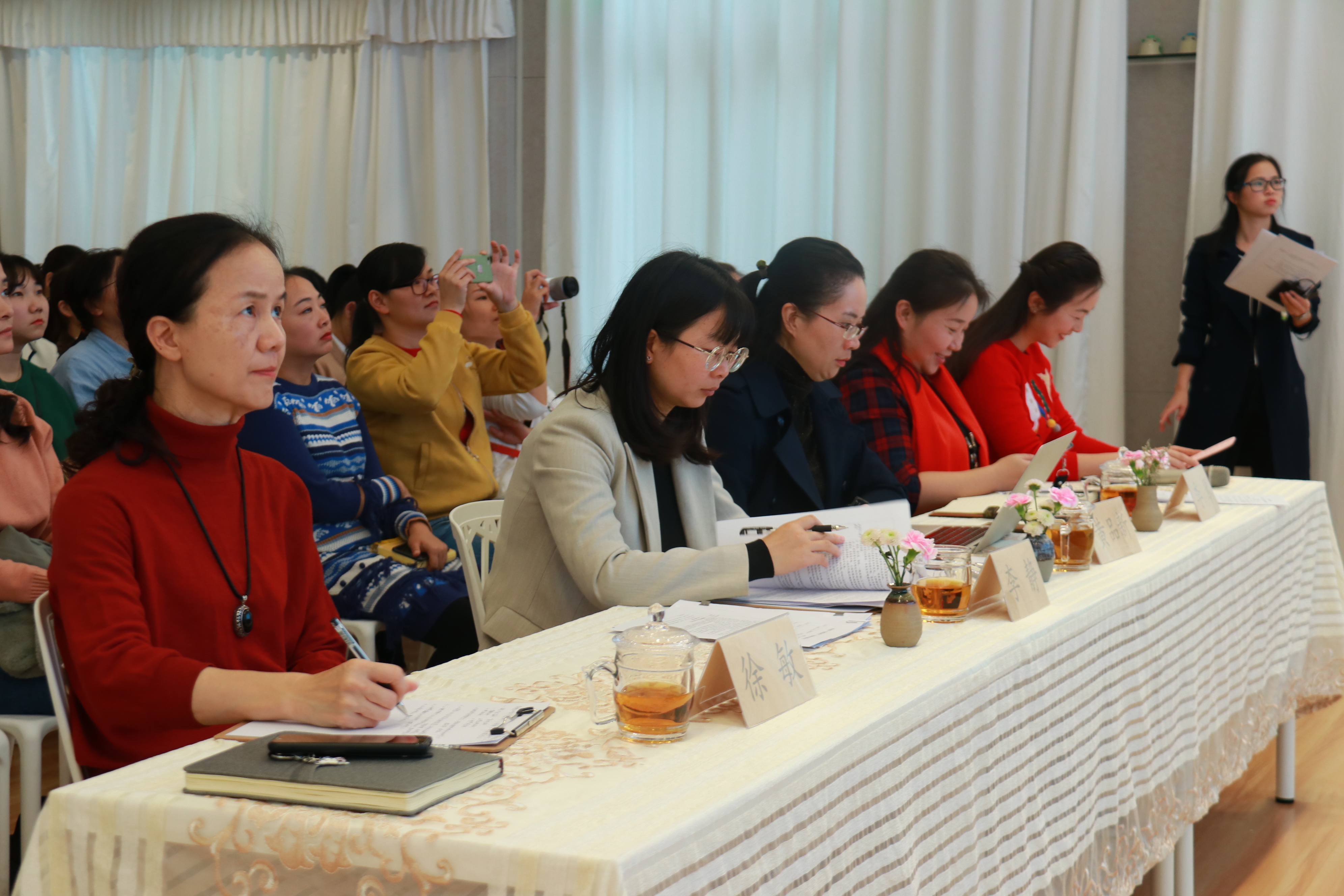 清秀幼教集团温文英、郭丽娟、刘敏等22名课题主持人;武锦幼儿园的唐容、谭永丽、黄淑芬;亚太幼儿园的黄锐璇、冯琼惠、王贺梦;坭岗幼儿园的朱琴英;童晖幼儿园的黄海娜;金祥幼儿园的曾雪美;龙园山庄幼儿园的王芳;华实幼儿园的陈伟依次就主持的课题作开题汇报。在小课题主持人汇报结束后,专家组对33个课题进行了开题论证,分别给予了具体建议,让小课题主持人进一步理清了课题项目思路,深挖课题项目的价值与意义,为更好的开展课题研究之路提供强有力的基础,指明了课题前进的方向与路径。