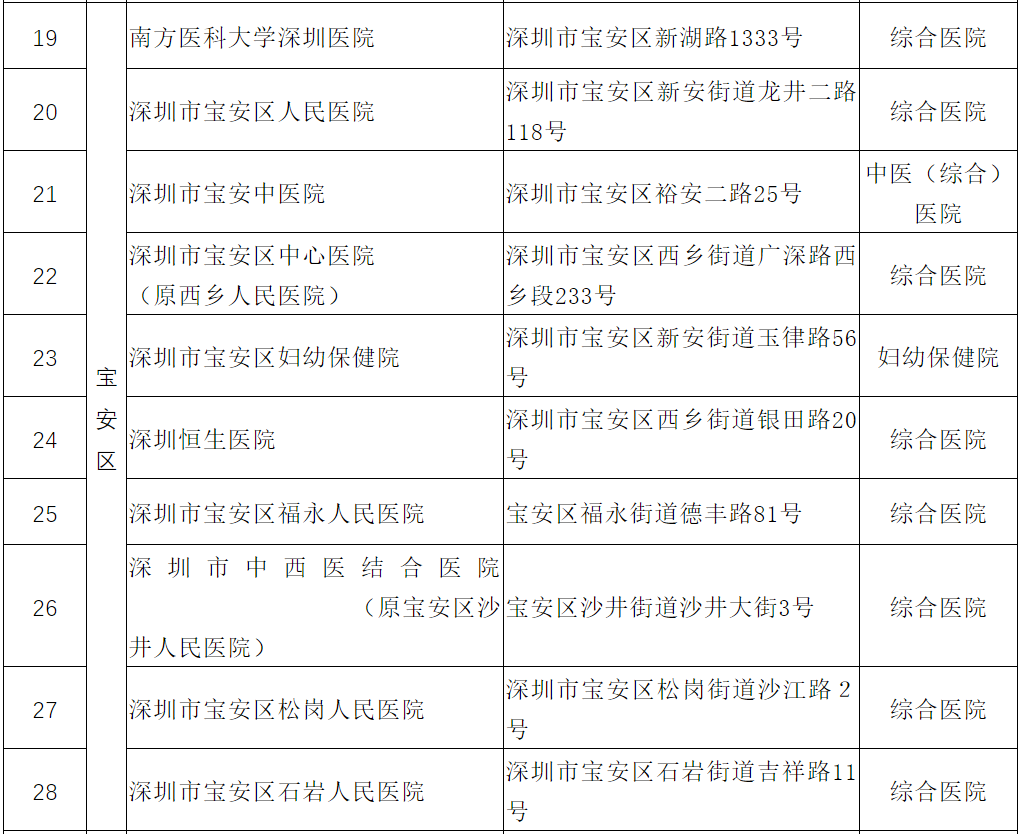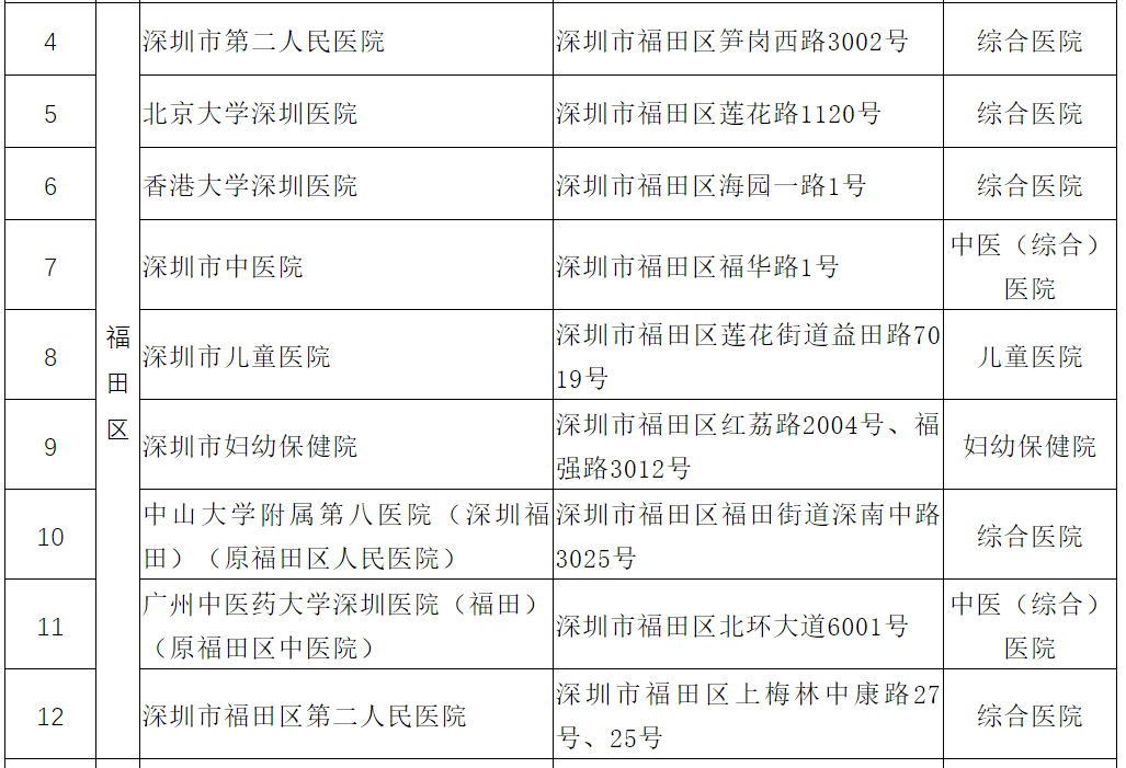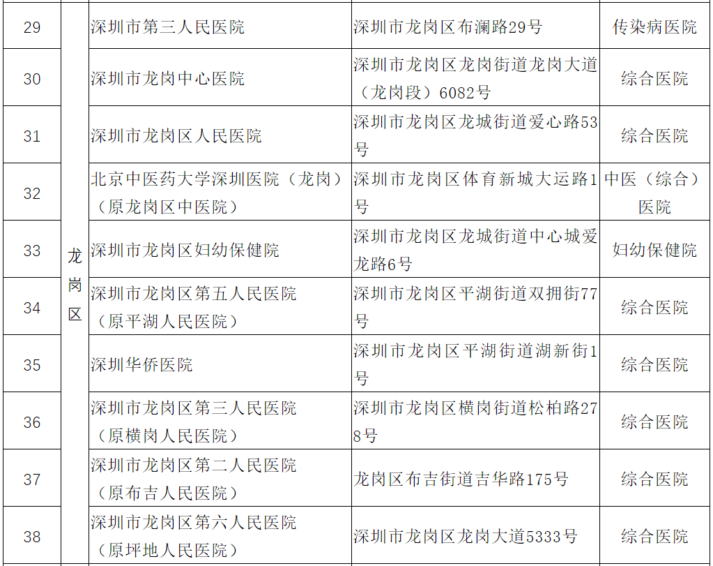 七、积极就医。出现发热、咳嗽或打喷嚏、呼吸急促等症状,及时到发热门诊(名单见下图)就诊,如近期(2周内)到过武汉或者接触过类似病例,应主动告知医生。积极配合医疗卫生机构执行相关规定。