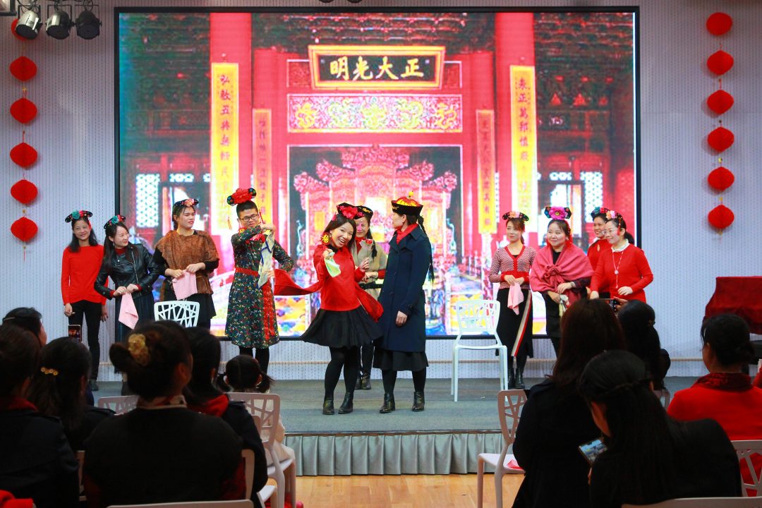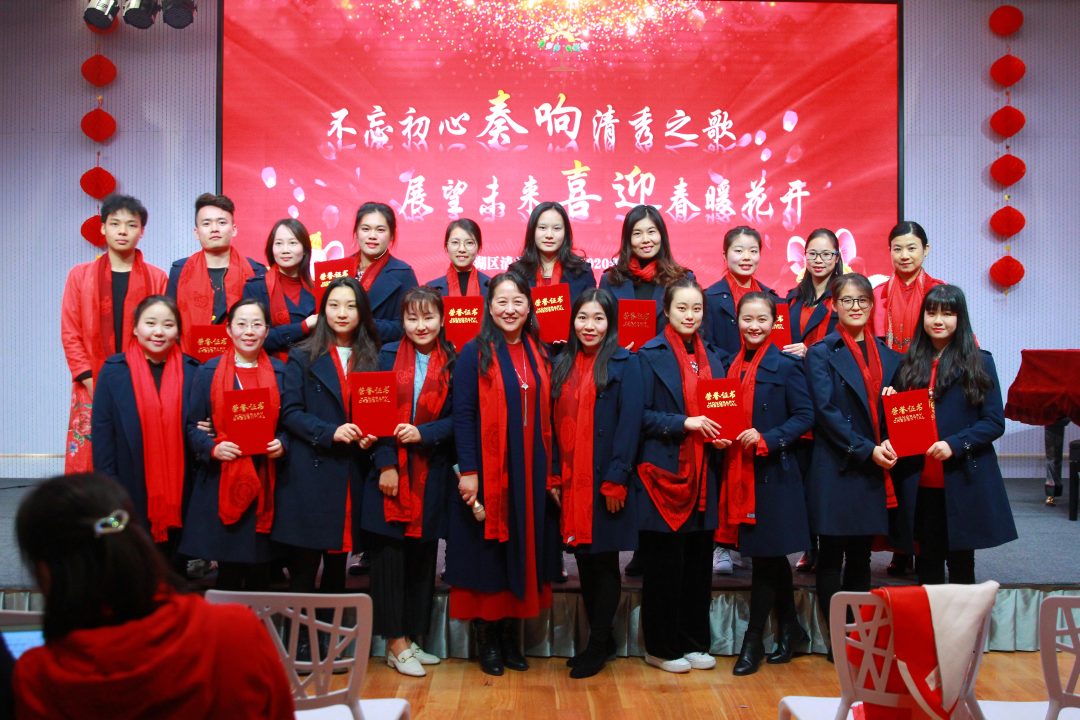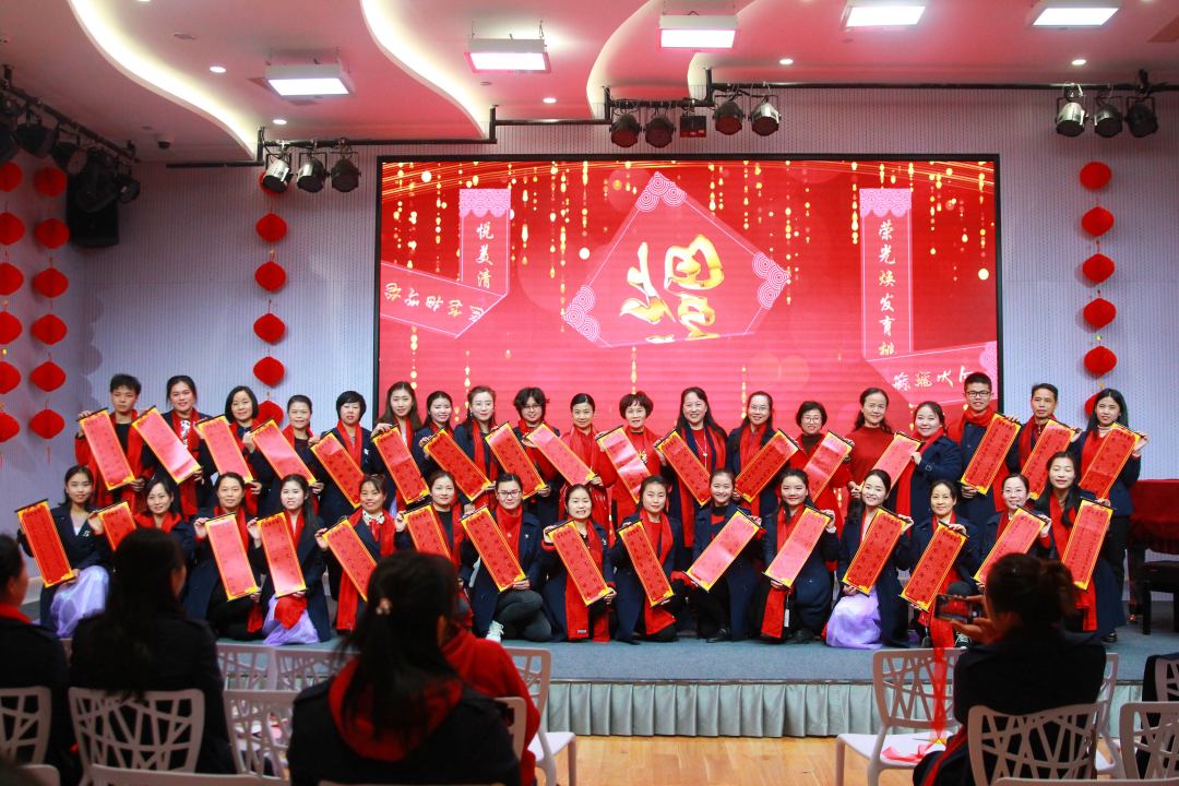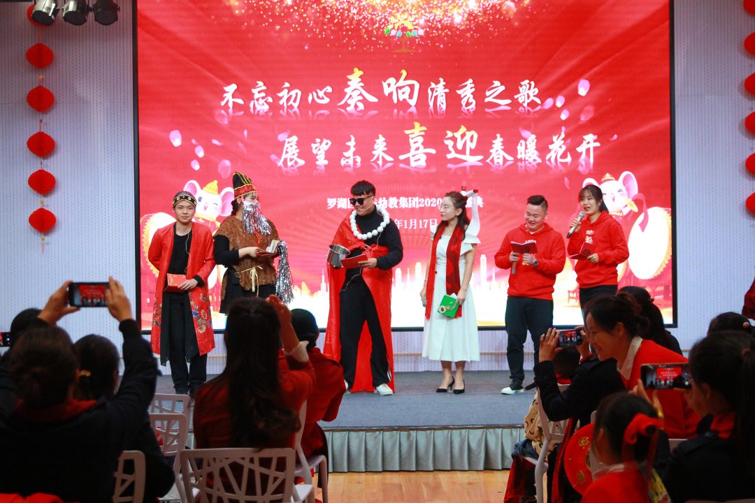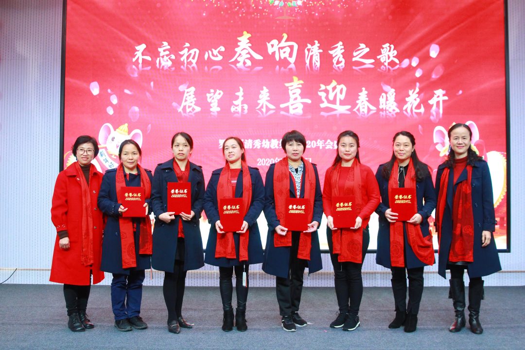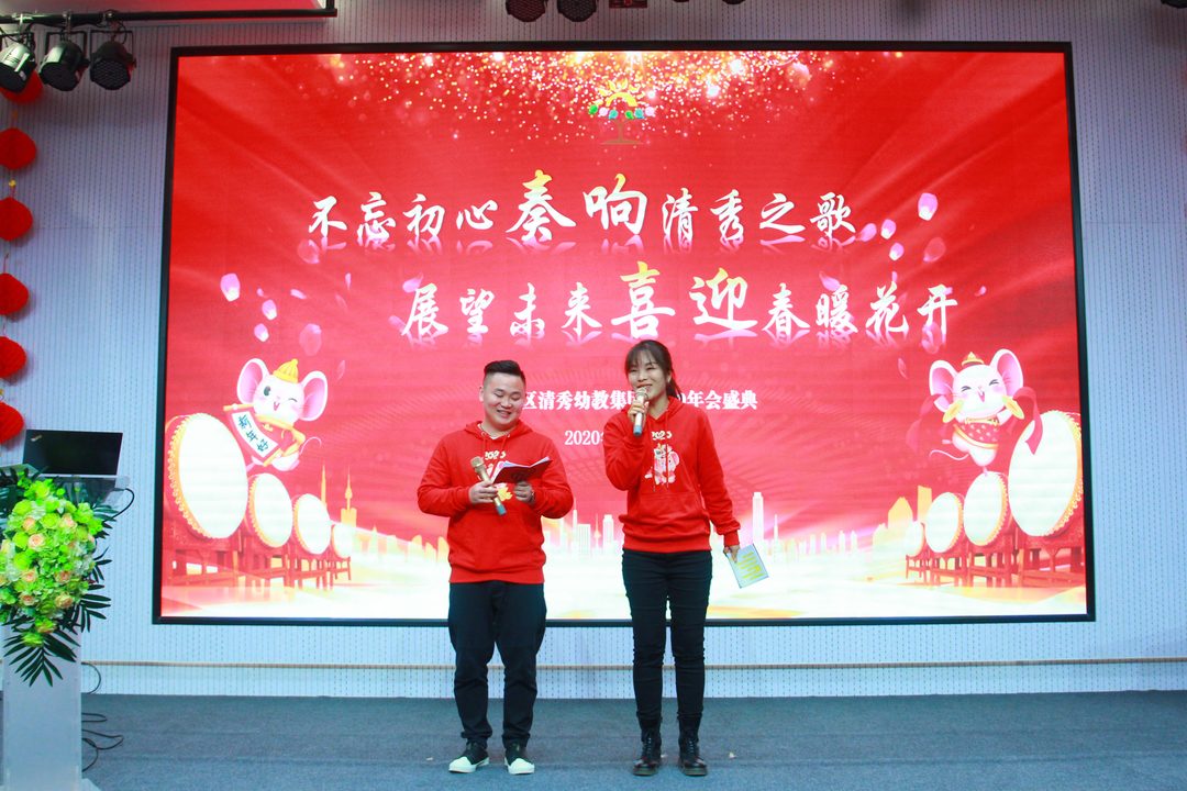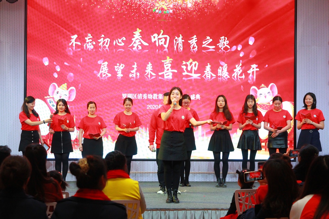 青山陇苍翠,绛红展欢颜,在2020这个充满了喜庆和祝福的小年夜,罗湖区清秀幼教集团全体教职员工在淘金山幼儿园召开了以“不忘初心奏响清秀之歌,展望未来喜迎春暖花开”为主题的年会庆典。年会庆典共由学期工作总结、学期表彰、新春对联创作展示及才艺闹新春四个大项组成。