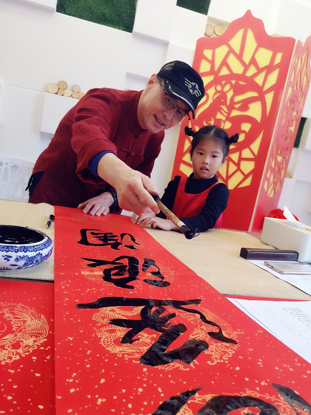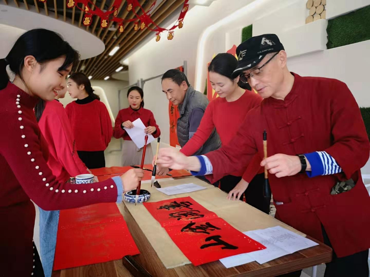 在新春之际,集团教职工挥洒才华,创作了许多精彩绝艳的对联,如:“德行天下福满园,弘扬教育聚情怀”、“一汪清泉浸润师幼心灵,八方秀水谱写幼教鸿章”、“春到金山生百福、花开清秀纳千翔”......千门万户曈曈日,总把新桃换旧符。活动当天,集团特邀两位书法家,笔墨写祝福,丹青抒情怀,为清秀幼教集团书写浓浓春意与满满期盼。