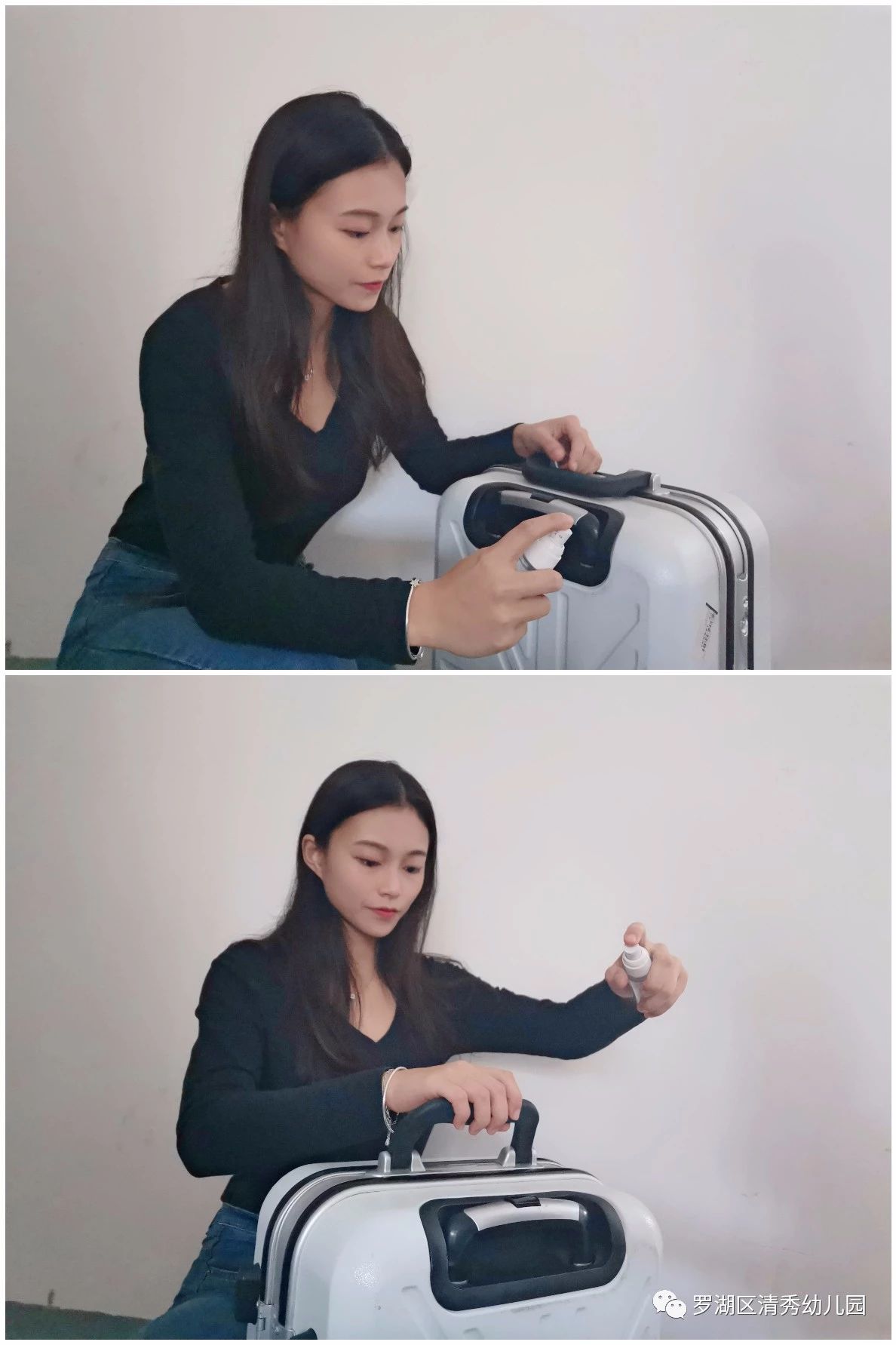 使用75%的酒精喷洒行李箱外部。