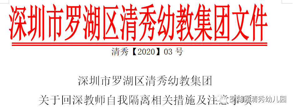为确保全体教职工身心健康,罗湖区清秀幼教集团“众志成城”领导小组对回深教职工以及住宿舍的单身教师做了详细的统计和周密的安排。