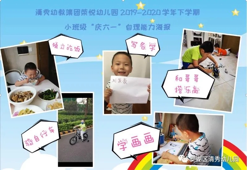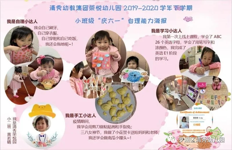 荣悦幼儿园的老师们以生活促陪伴、以成长促发展、以感恩促教育,鼓励孩子们在云端的舞台里展现自己共庆节日,共同成长!成长的舞台里,小班组老师引导幼儿向家人和同伴展现自己的能力,借此把幼儿生活习惯的培养融入教育教学中,提高幼儿的生活自理能力;混龄及中班幼儿通过云端节目汇演的方式让幼儿在主动性、创造性的发挥中树立自信心,在云端向同伴、老师、叔叔阿姨等展现自己的才能,感受节日的快乐;大班老师组织幼儿了解在这个全人类共同抗击疫情的时间里,中国给予世界各国的力量支撑,让幼儿感知祖国的强大,并引导幼儿通过艺术表征的方式,畅想六一,畅想未来。
