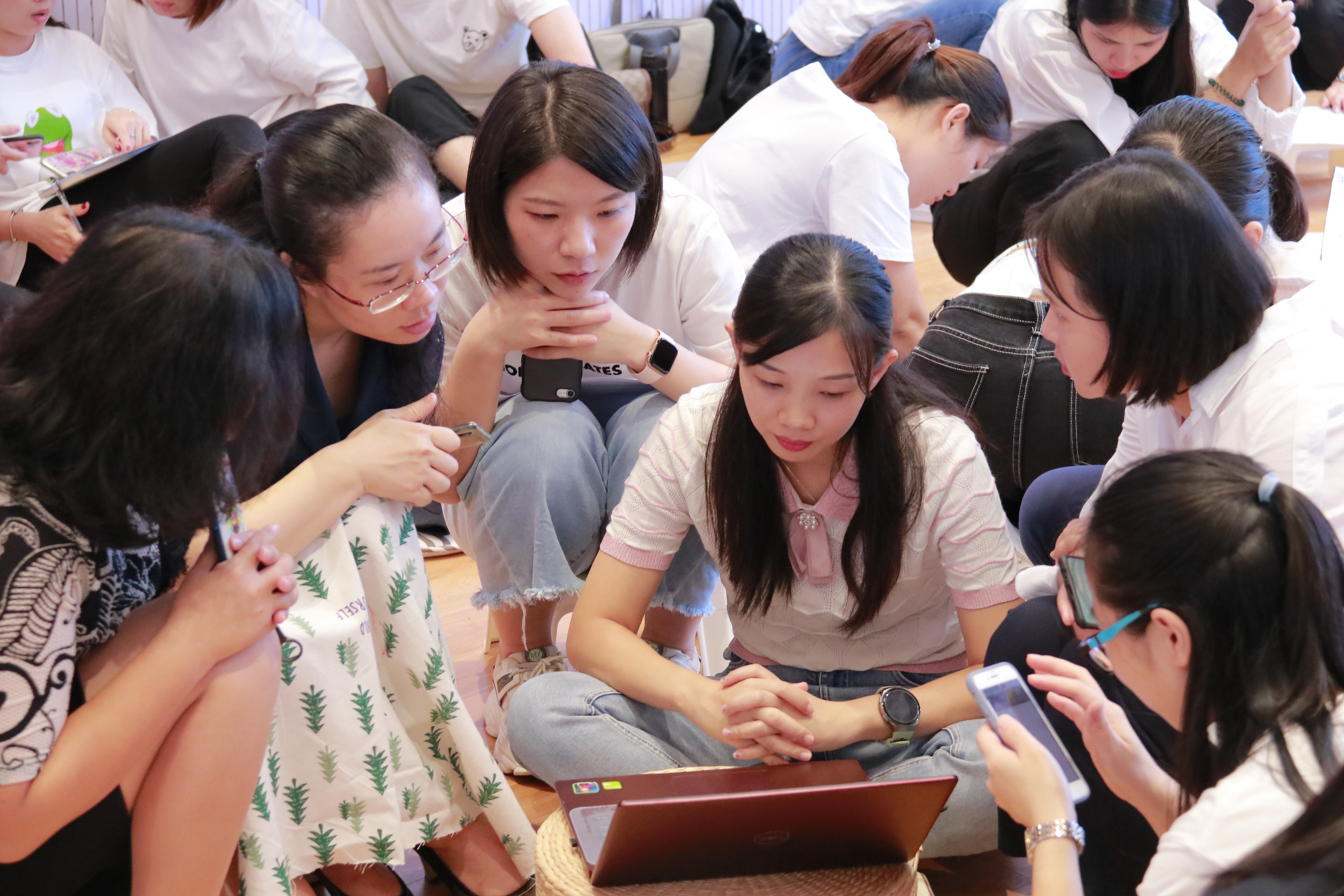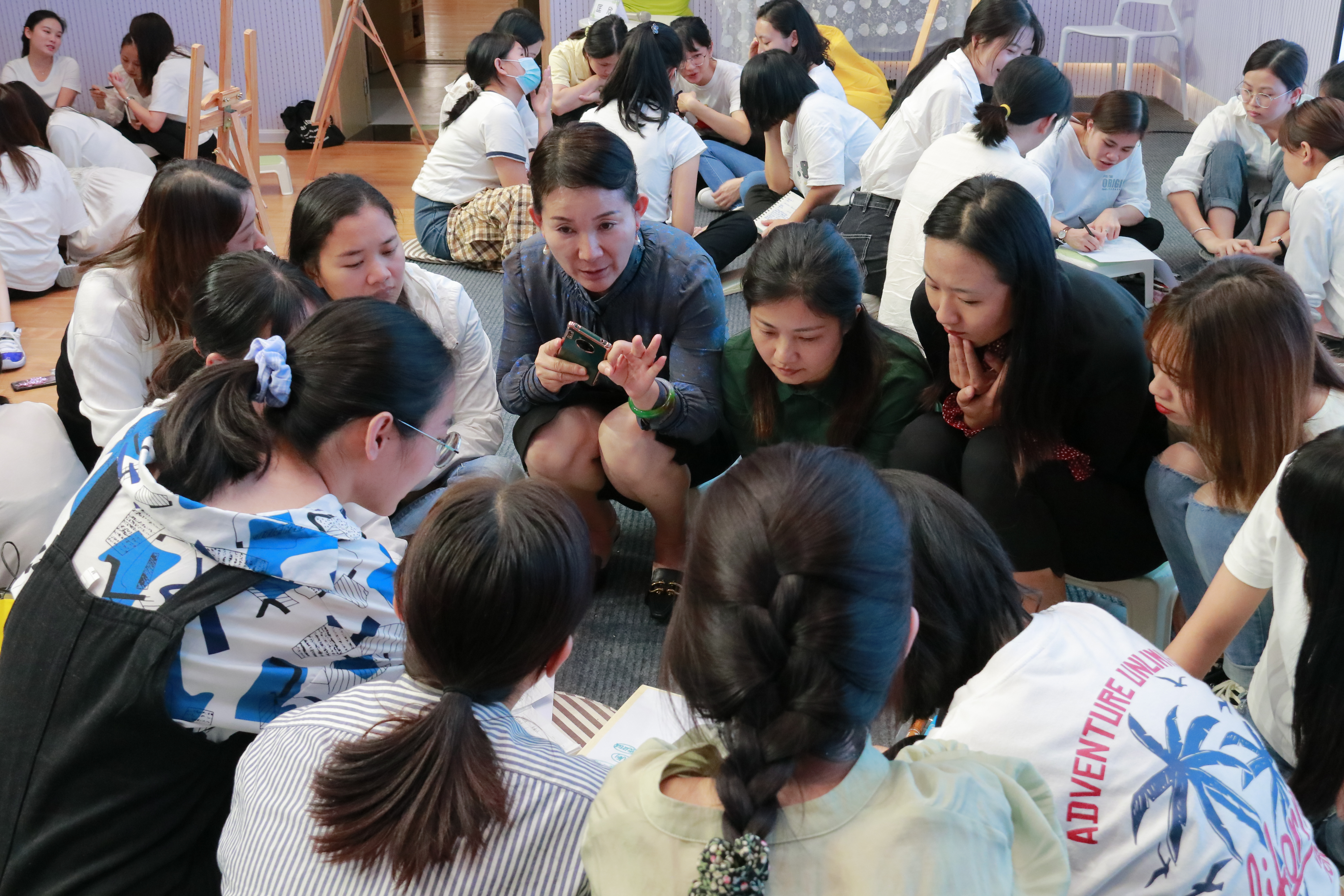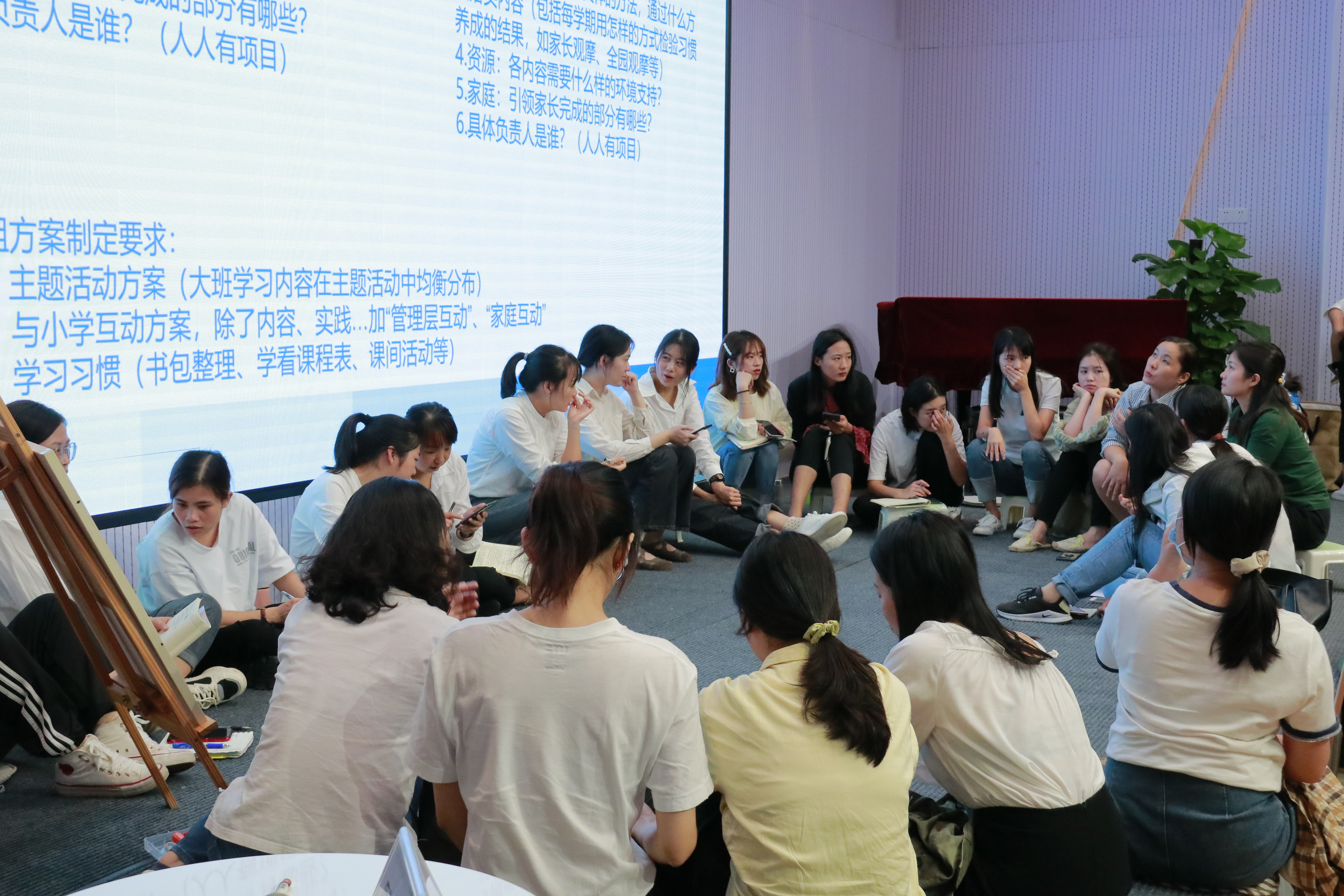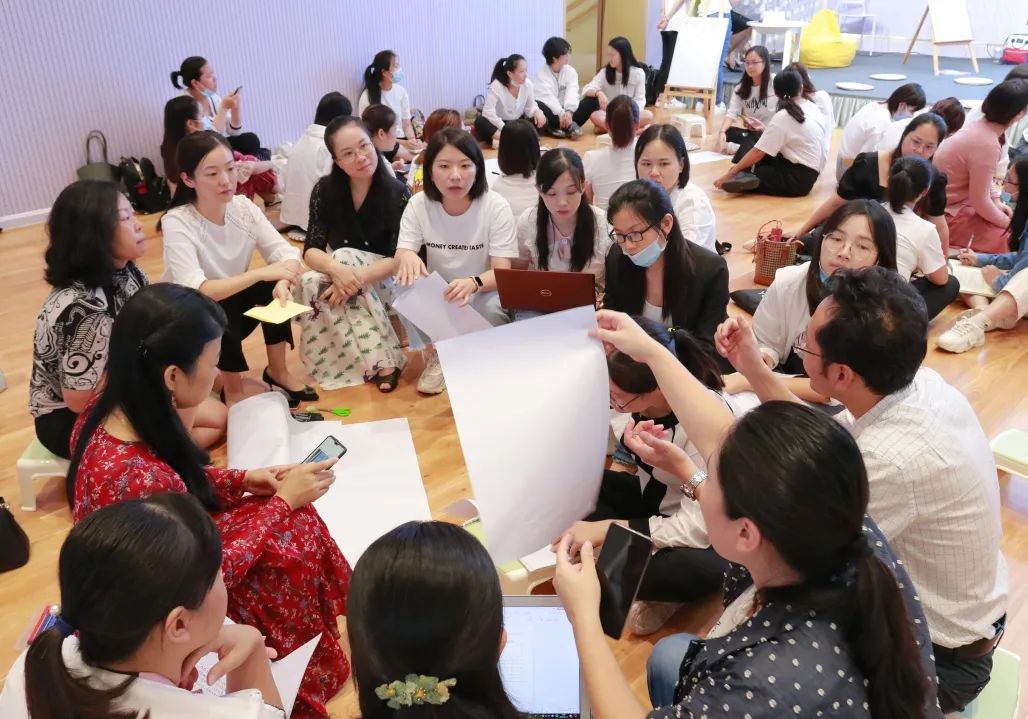 有着27年幼儿园一线从教经验及7年教科研工作经验的罗湖区教科院教研员匡欣老师结合自身多年的研究成果和实战经验,为清秀人带来了一场案例分享与现场研讨实操为一体的“烧脑”盛宴。匡老师用“专业”一词引出了本次研训的主题,并从幼小衔接的实施者、开展时间、工作重点等方面进行了分享,层层深入剖析了幼小衔接谁来做、什么时候做及如何做。全体参与教师、教管人员分成了7个研讨小组,针对小、中、大班幼儿年龄研讨与之相符的幼小衔接方案,园方管理者根据各年级幼小衔接开展预设工作推进表。各小组在讨论后汇总和阐述研讨结果,匡老师结合各小组的汇报情况,给出了实质性建议,让幼小衔接工作在不同层级里的开展更实效。