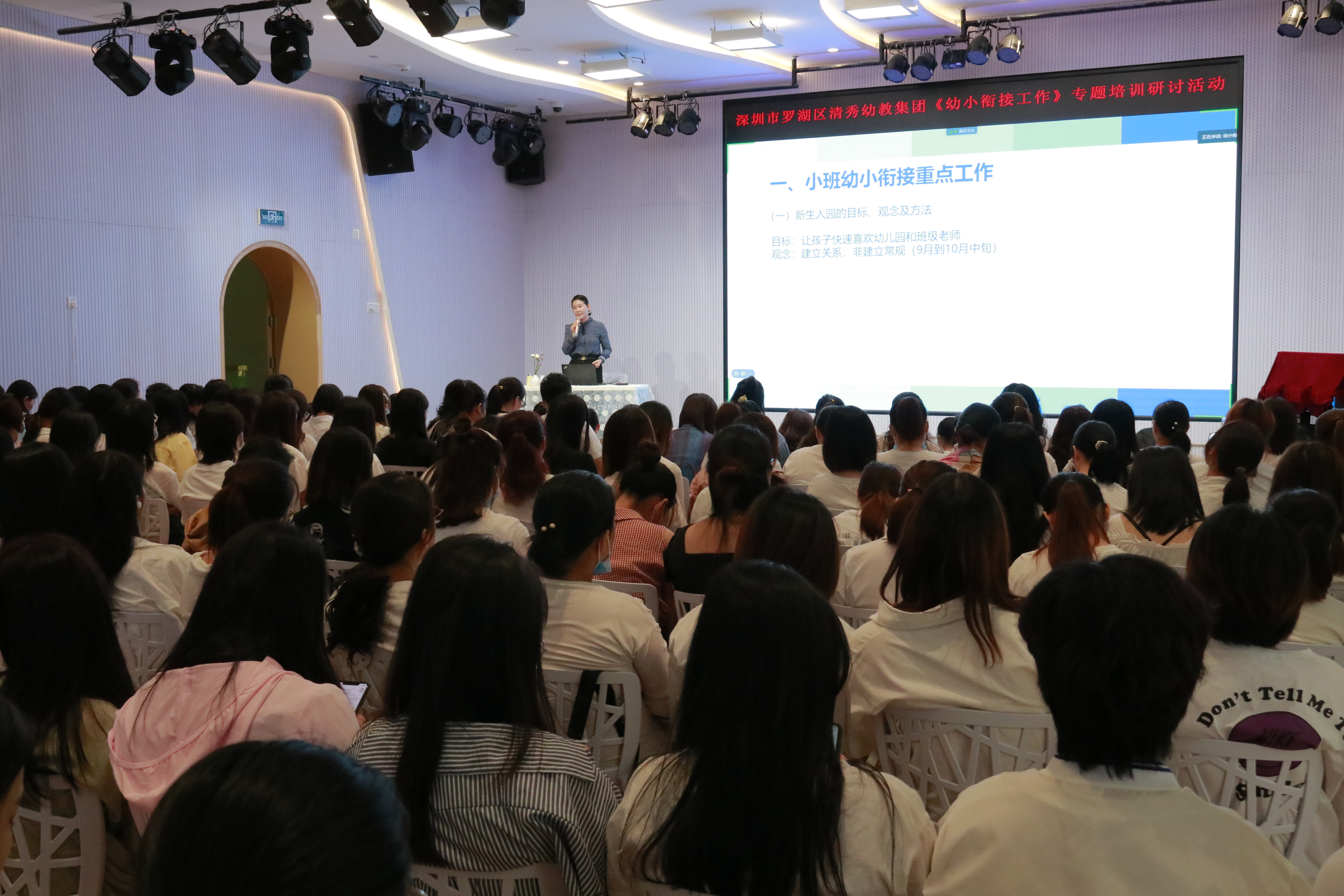 为进一步加强幼儿园与小学教育的衔接工作,帮助教师突破实施理念及实践难点,助推幼儿园有目的、有计划地对学龄前儿童进入小学做适应性准备。根据相关文件精神,结合我园实际情况,罗湖区清秀幼教集团邀请了资深幼教专家——匡欣老师,于2020年10月17日,在集团淘金山幼儿园开展了“幼儿园幼小衔接工作”专题培训研讨活动。