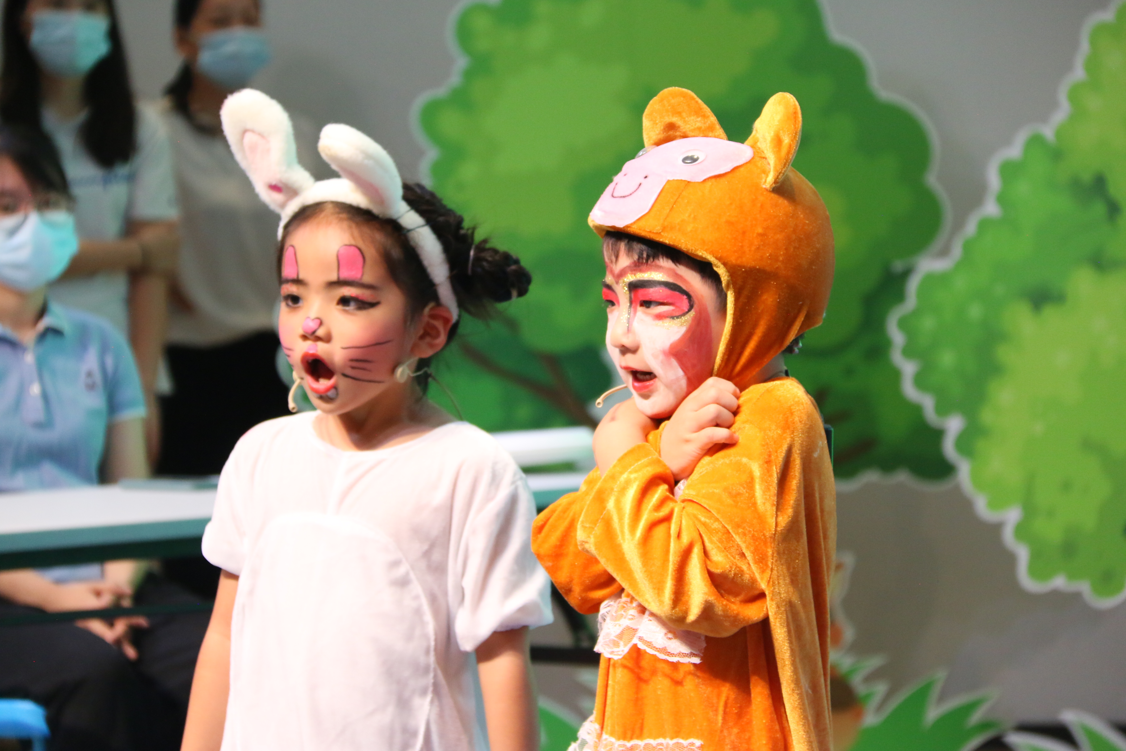 从园级、集团选拔,再到区级半决赛,台上“三分钟”,台下“十年功”,集团、幼儿、教师、家长四方联动。孩子们一次次演绎,教师、家长反复推敲故事情节和动作要领。表演过程中,孩子们言语表达抑扬顿挫,身体姿态张弛有度,逼真的妆容及服饰让故事表演锦上添花,将一个个故事角色演绎得活灵活现,传达出了一个个平凡而富有教育意义的故事内涵,最终赢得观众评委的一致好评。