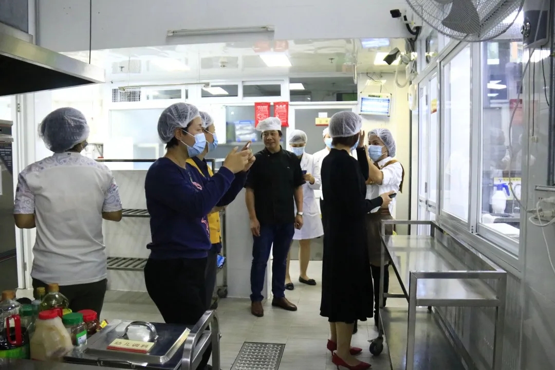 会上,园内保健组长成医生就幼儿膳食搭配、营养分析、食品加工、留样、分发等情况逐一作了详细介绍;将台账交膳委翻阅,让膳委们了解幼儿园的食品进货状况;同时,对膳委提出的疑问作详细解说。后勤副园长冯春阳带领膳委们戴上一次性口罩和厨房专用帽,实地参观幼儿园后厨。膳委们纷纷对厨房的卫生情况,设备安全,流程设置的严谨等方面点赞。厨房参观也让增加了膳委们对幼儿园的了解与信任,增进了幼儿园与家长间的相互沟通与理解,对幼儿园下一步改进膳食管理工作起到了积极作用。