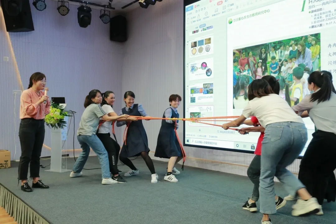 活动过程中,邹老师结合具体的实践经验,和园长、老师们分享幼儿生态教育具体如何做的方法,通过创设具有生态特色的环境、设置专用幼儿生态游戏教室、常态化组织生态教育活动、设置班级自然生态游戏区域等多种途径,帮助幼儿不断建立与自然之间的联系。园长、老师们亲在活动中身体验自然游戏,获得更深的自然感受,领悟生态、自然教育的魅力,思考生态、自然教育的目的和实施路径。