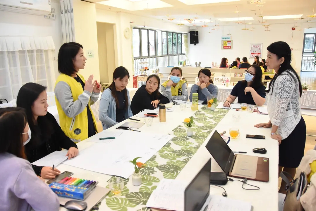 活动前,孙部长对观摩活动提出了具体要求及分工,观摩人员结合“半日活动的安排与组织”、“自主游戏的支持与引导”以及“室内环境的创设”三个大点进行了观摩。观摩结束后,各小组分别对园所9个班的环境进行了探讨,各班的特色主题桌——“幼儿园里有哪些人”、“种植”、“传统美食”,角色区、音乐区等区域环境创设羸得了观摩老师们的一致肯定与好评。老师们也从“环境支持与组织策略”的角度就“晨谈活动”、“积木搭建”以及“主题活动”进行了研讨交流,并将讨论成果经验共享,共同提升。