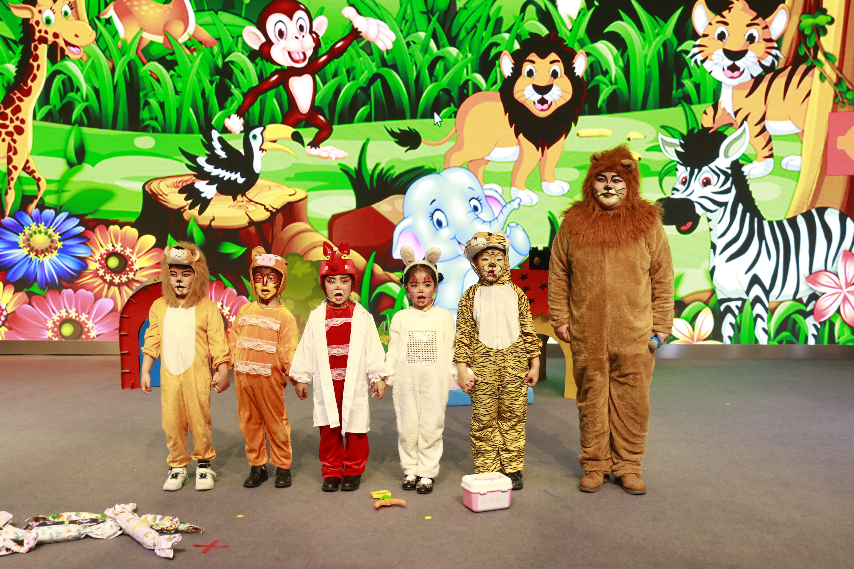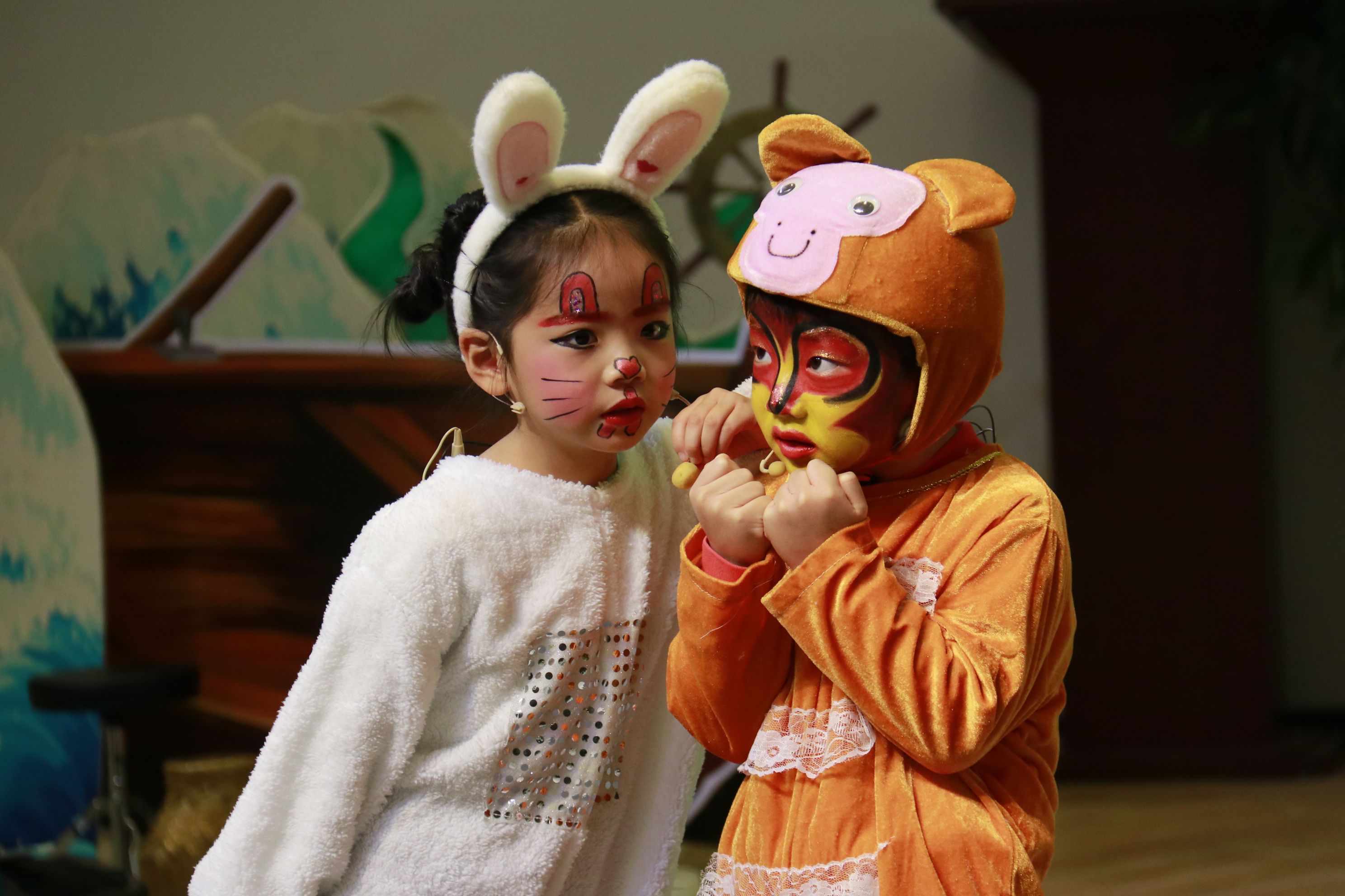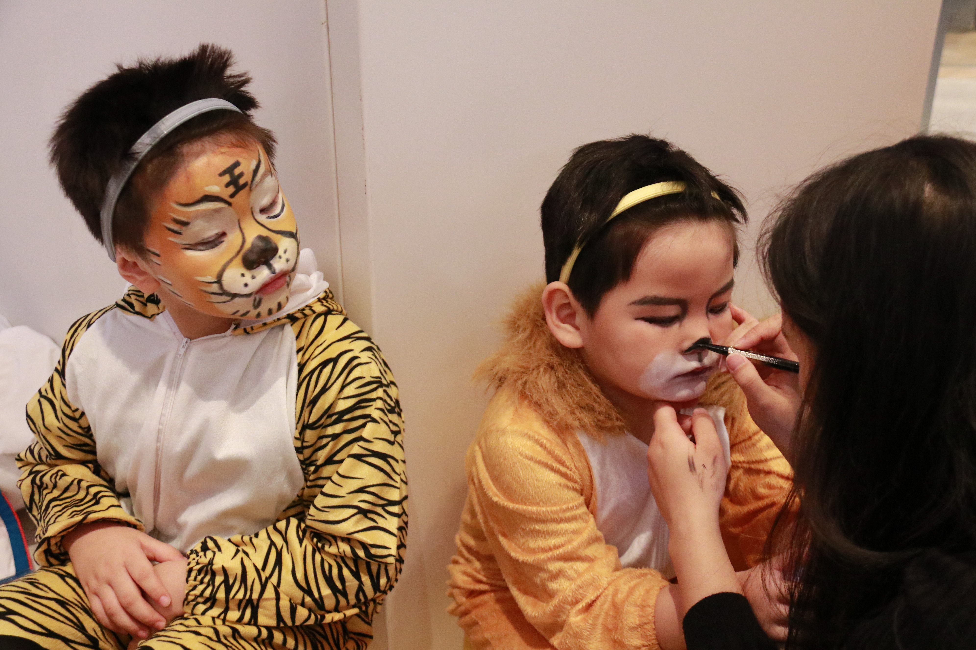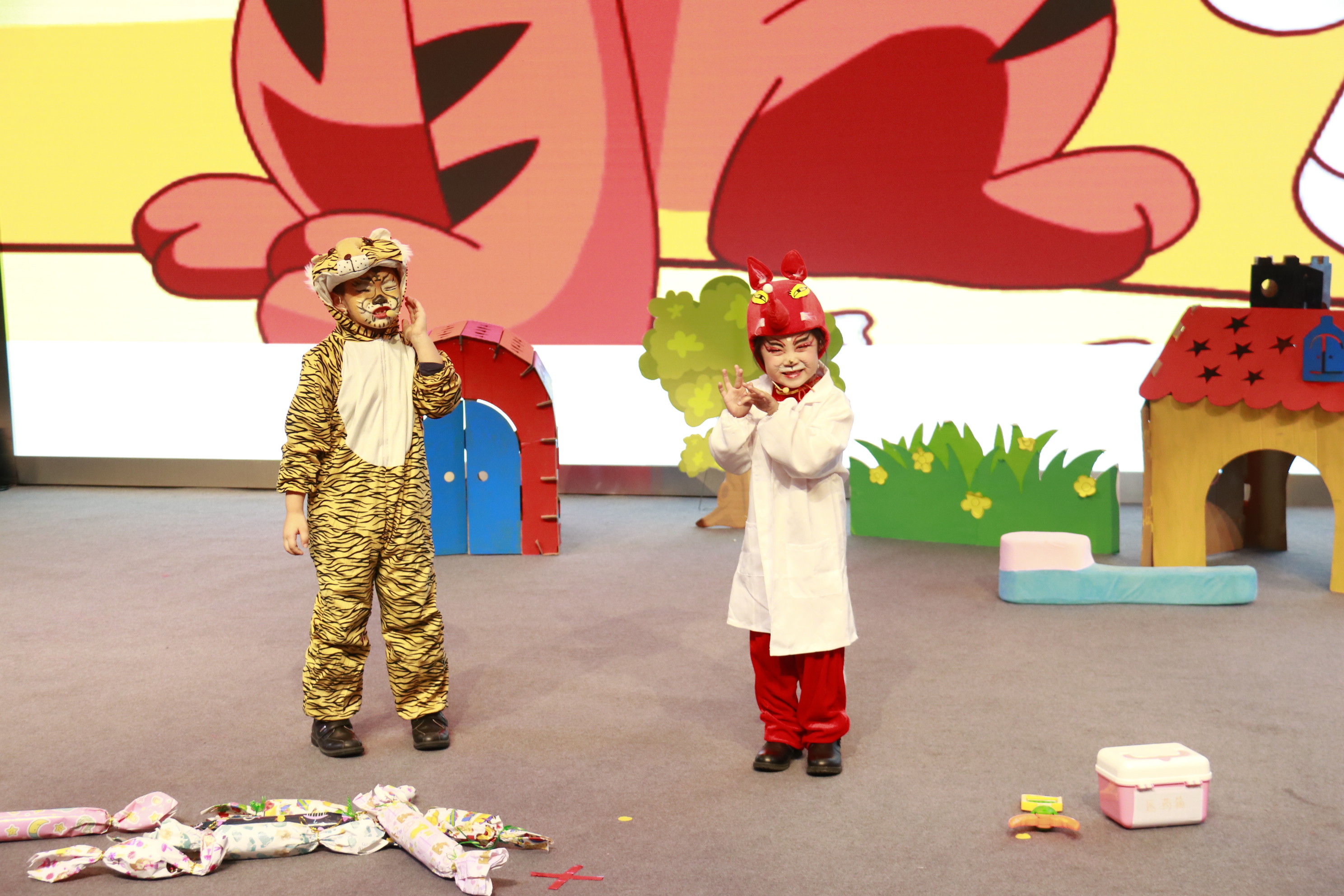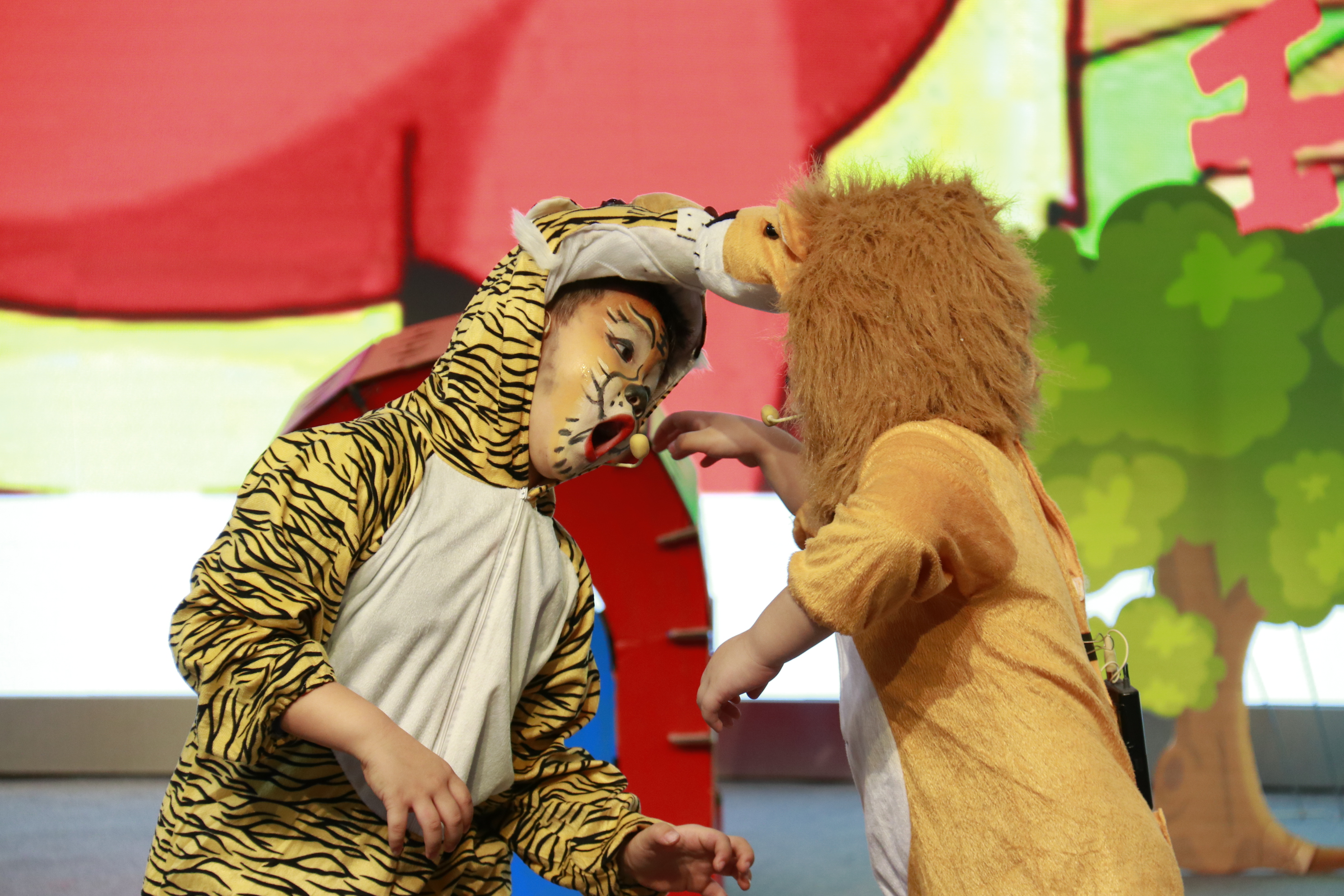 为了将故事中的角色演绎得淋漓尽致,妆容与服饰必不可少。老师们在孩子的脸上“施展魔法”,小动物们形态逼真、惟妙惟肖,宛如从森林里走出来一般。故事《老虎拔牙》在经典版本基础上进行了故事内容与情节的丰富与强化。孩子们出色发挥,通过逼真的神情、富有感染力的言语、精细的动作——小狐狸摩拳擦掌,再次将钳子对准大老虎的牙,将故事演绎得饱满、生动,让人身临其境。