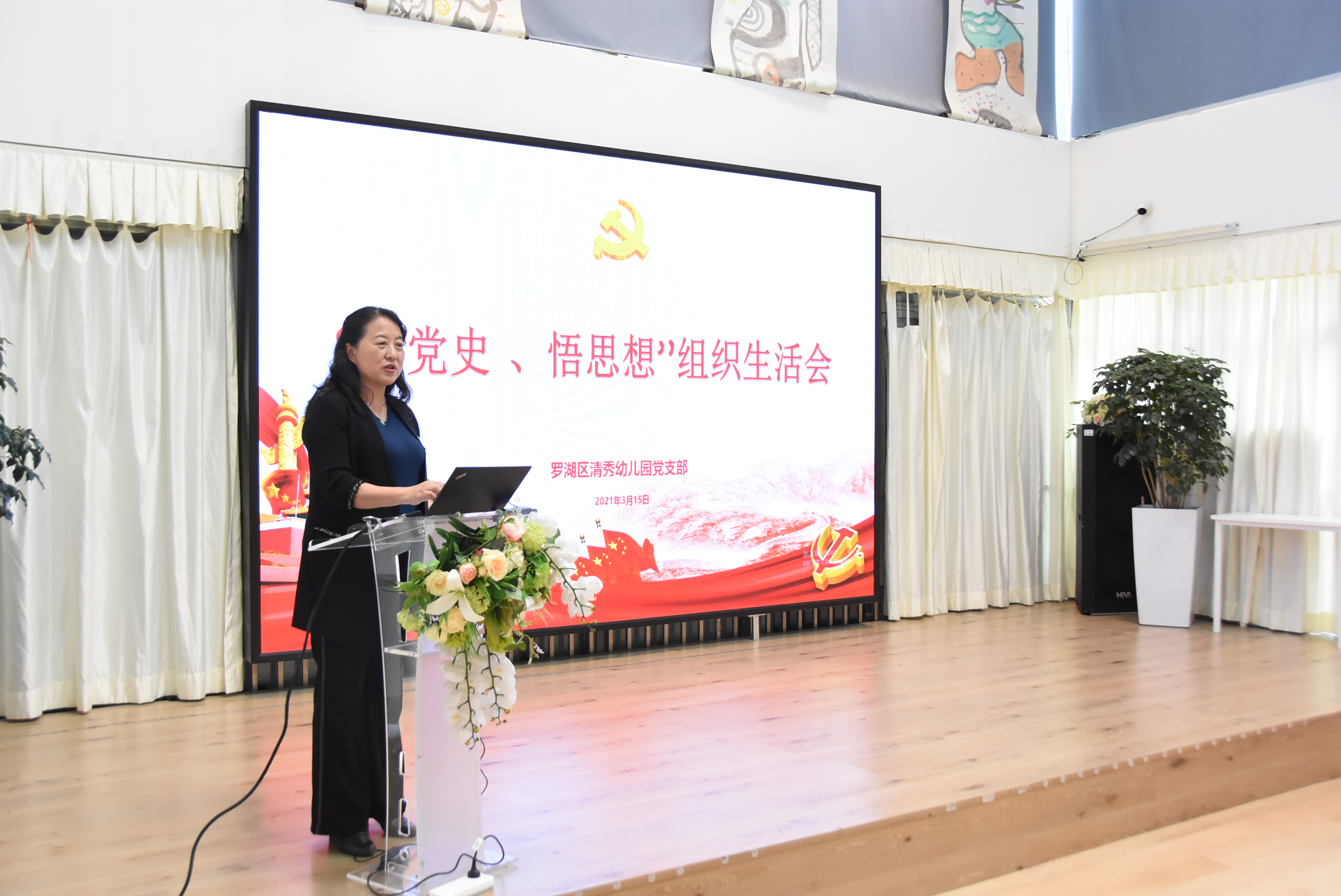 2021年3月15日下午,深圳市罗湖区清秀幼儿园党支部组织全体党员召开2020年度“学党史、悟思想”组织生活会暨党史学习教育动员大会,集团16名党员参加了活动。