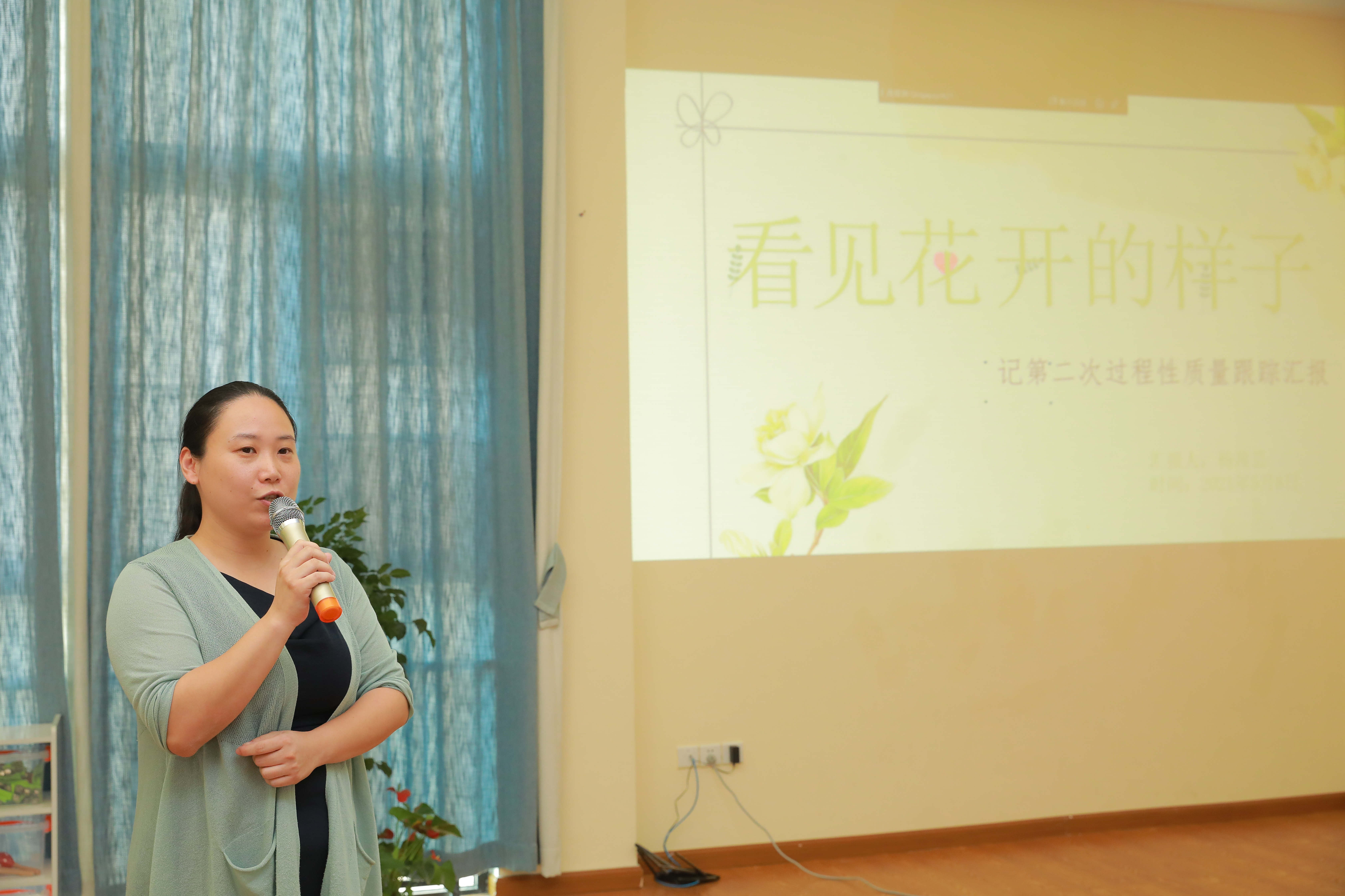 结合《集团幼儿园过程性质量跟踪方案要求》,对照指标进行理解与反思,培知园教学副园长杨茜芸及雅乐园教副园长廖娅娣分别以《看见花开的样子》和《优化环境,助力成长》为主题,进行园所第二次过程性质量跟踪汇报。