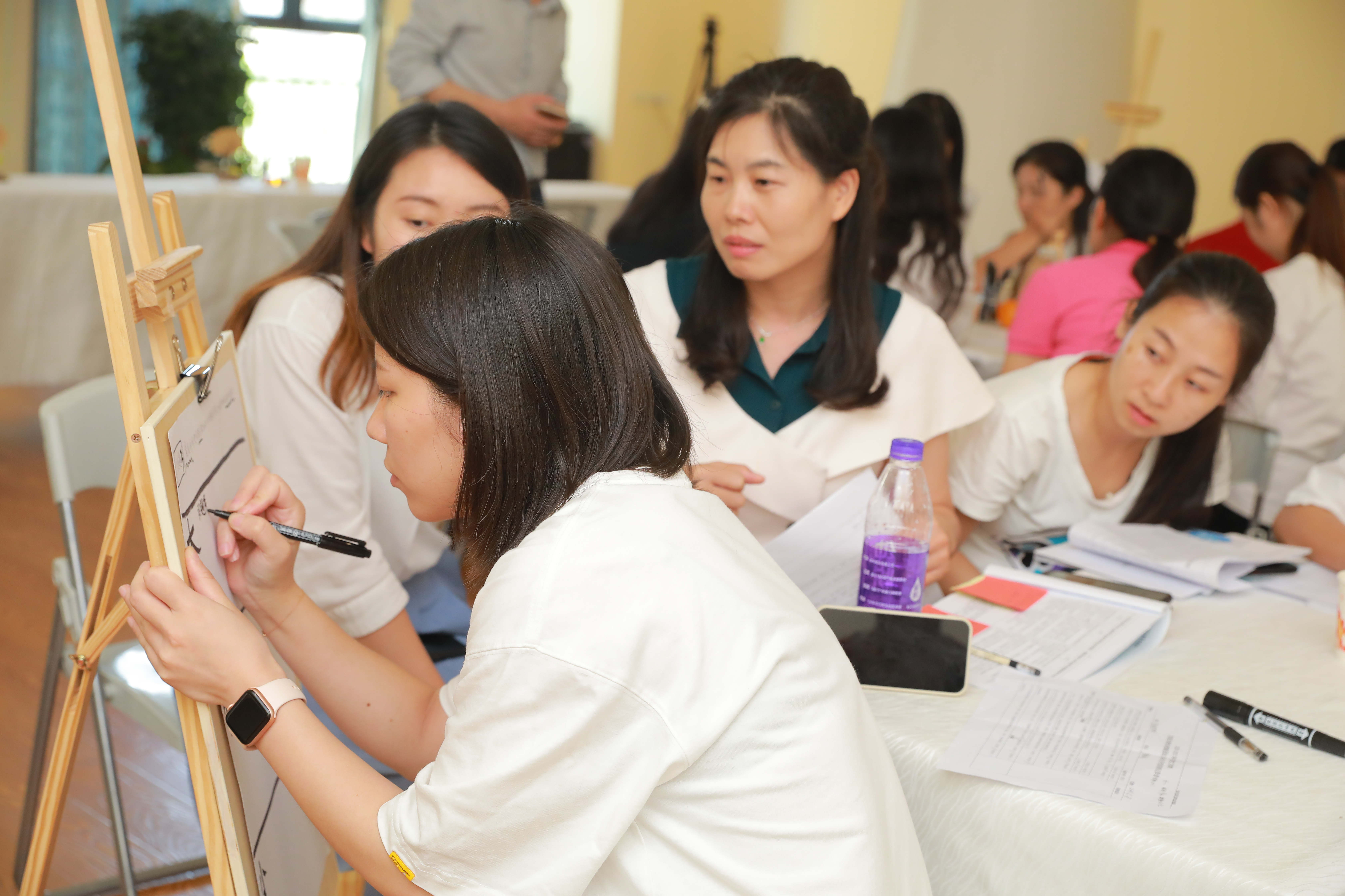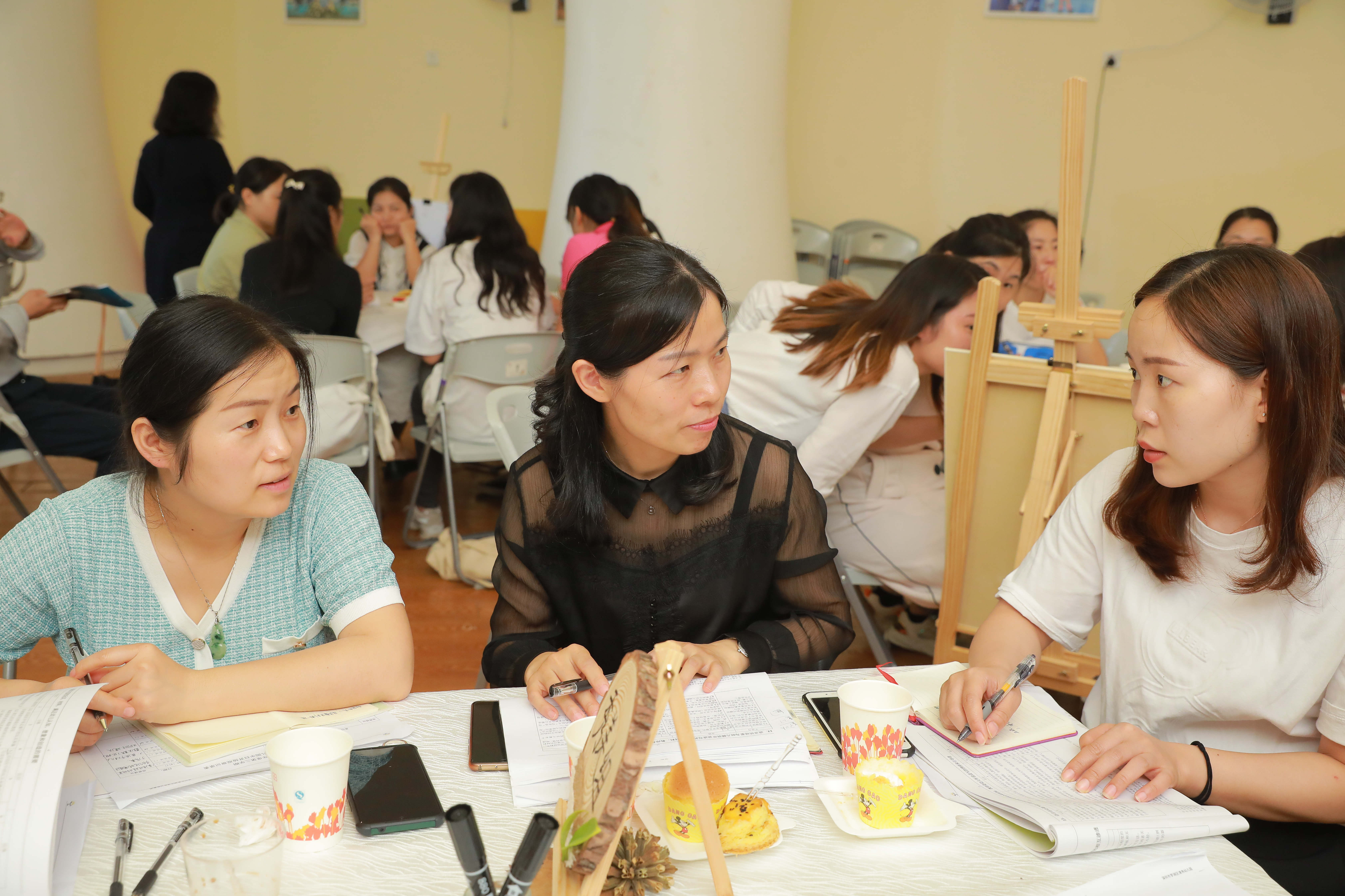 在集团教育教学部人员的组织下,观摩人员通过“世界咖啡”流动研讨的模式,结合“美工区如何通过材料、活动支持幼儿创作多样性的美术作品?”、“语言区如何通过材料、活动支持幼儿读写经验的发展?”、“晨谈如何使用语言激发幼儿对问题的思考,加强同伴间经验的传递?”三个话题,对应《手册》进行分组流动研讨分析,并针对观摩班级幼儿的个体差异、教师素养、保教配合等方面提出了自己的想法和建议。