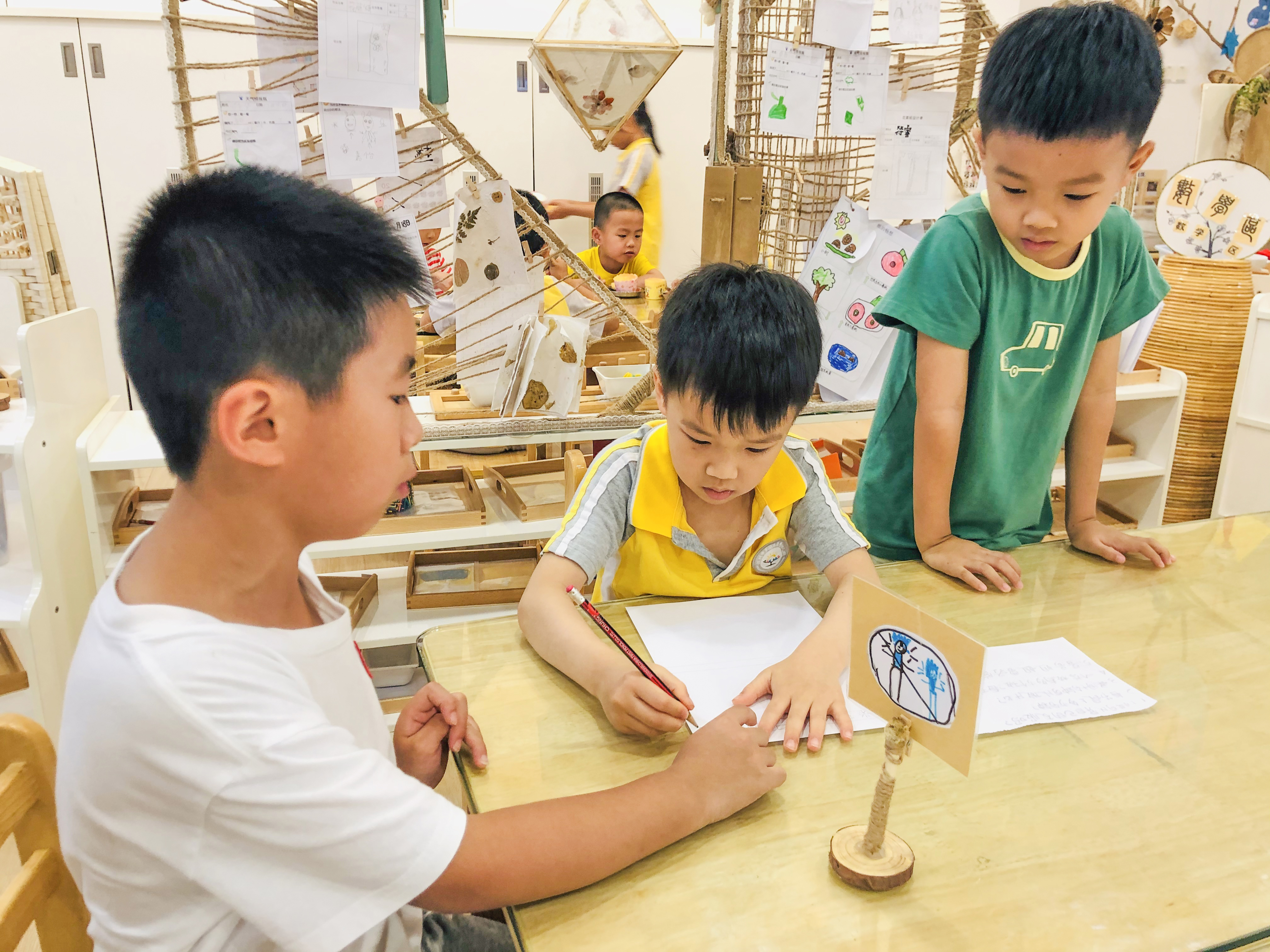 活动前期,孩子们通过图书、网络等媒介与老师、爸爸妈妈一起了解、讨论小学生活。孩子们通过讨论、绘画、记录等方式,规划参观时想了解的问题,并组建采访组,设计采访单,模拟采访现场,制作采访记者证、采访小礼物等,还自主制定了本次参观小学的出行计划。