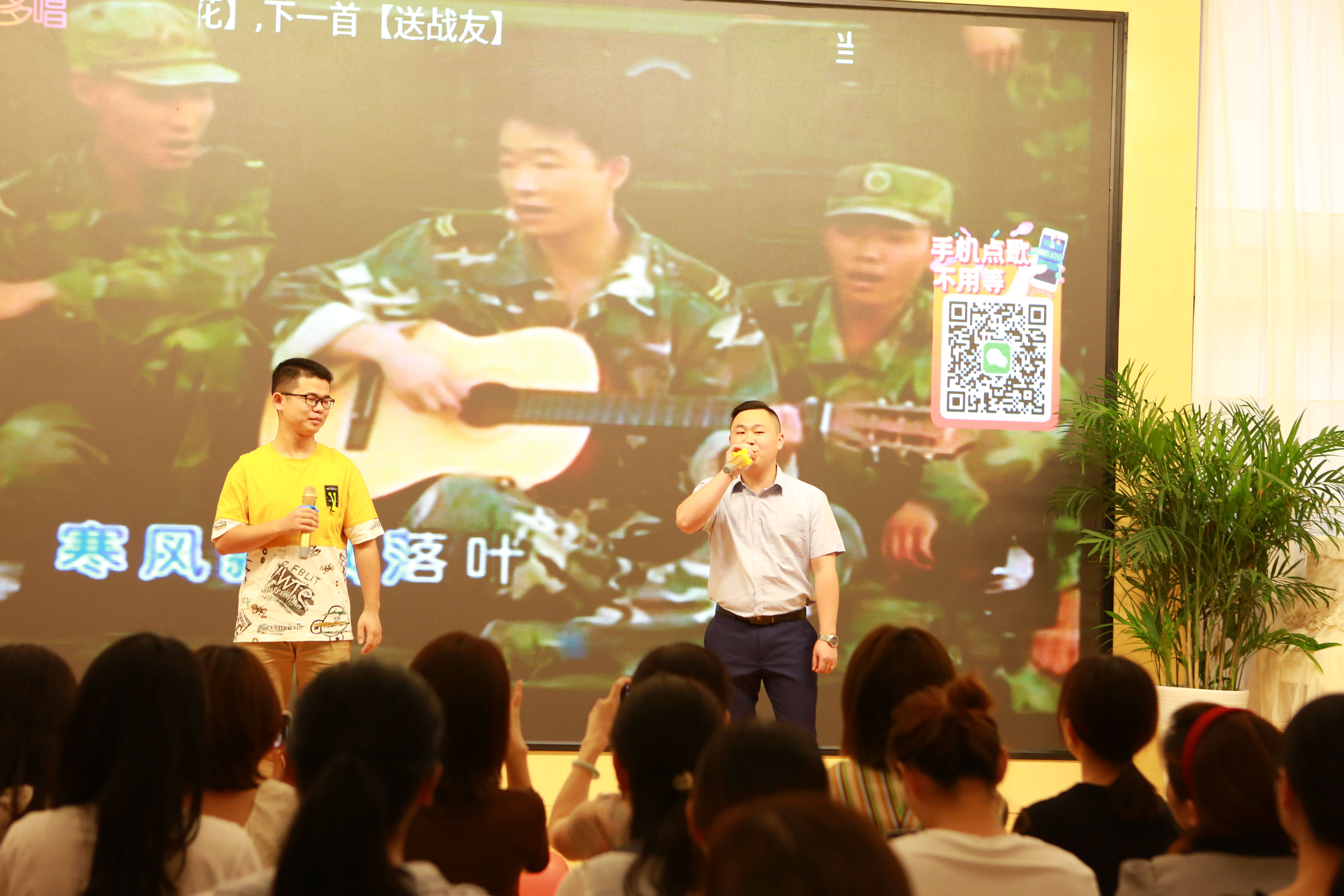 一句句肺腑之言、一首首时代心语,皆化作一声声或沉稳大气、或庄重婉约、或豪情万丈、或童心萌动的倾情演绎。荣悦园全体教职工齐上阵,唱响红色经典。为让每一位教职工一展歌喉、向党献礼,荣悦园采用了线上KTV+线下红歌会的形式,号召全体教职工在网络端进行红歌演唱,并根据线上排名“海选”出十组优胜个人、组合进行第二轮展演。熟悉的旋律演绎着中华儿女的拳拳之情;飞扬的歌声颂扬着共产党的不朽伟绩!