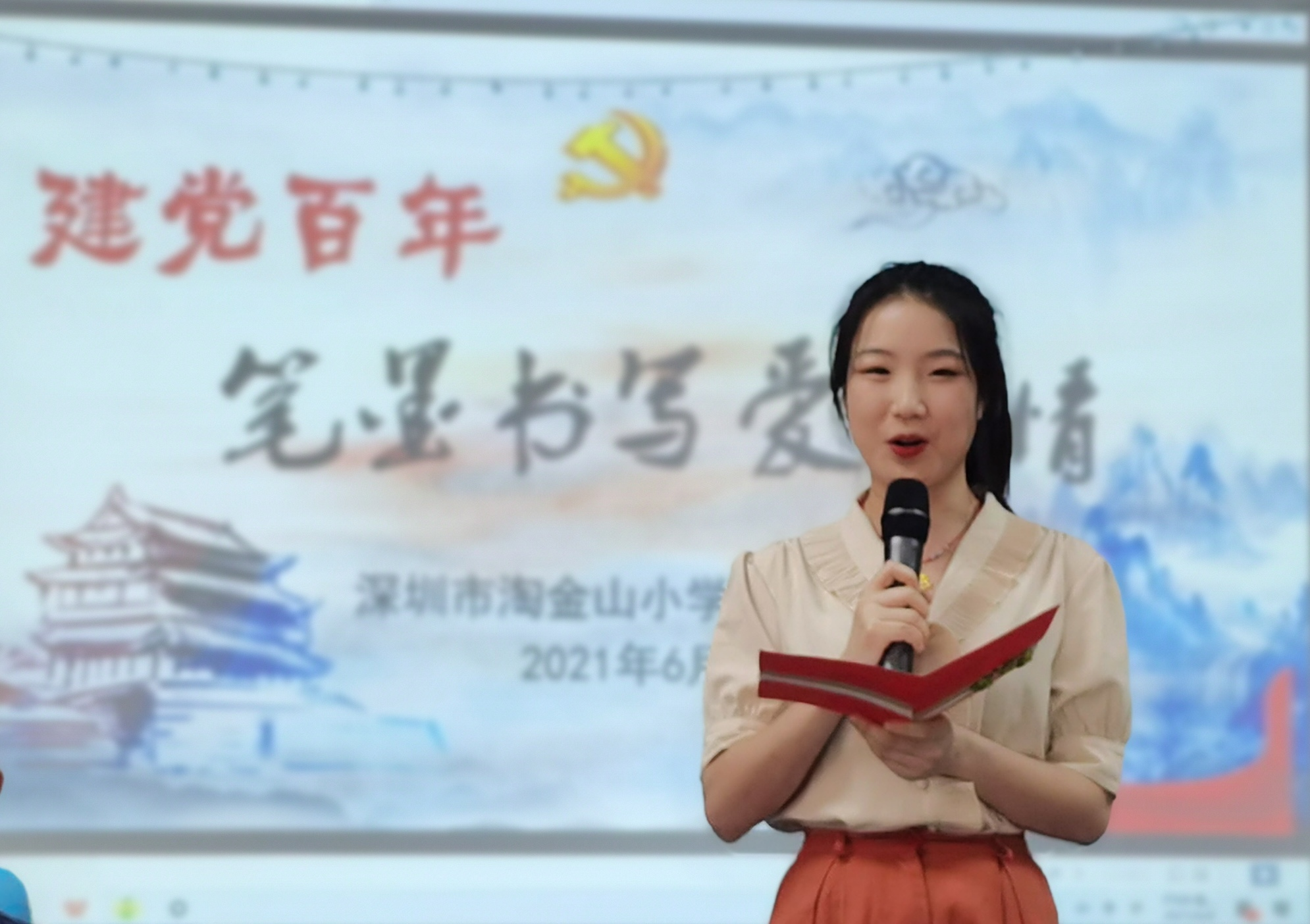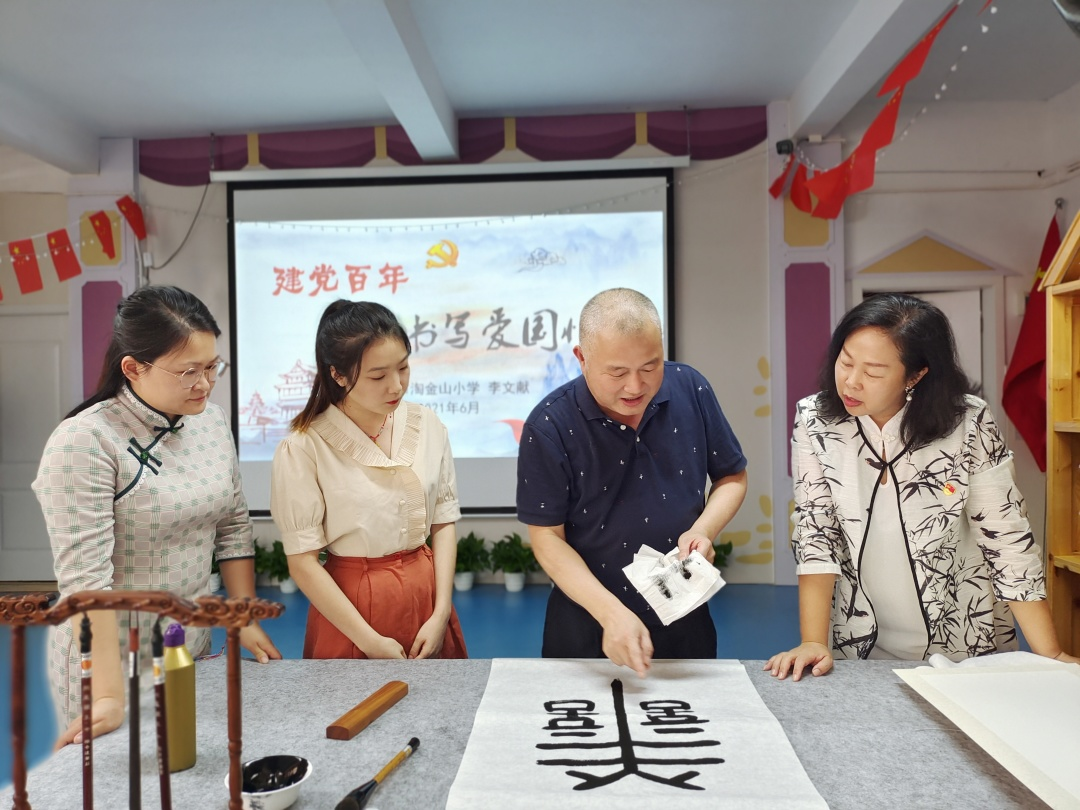 为重拾书写魅力、传承红色经典、充实我园文化氛围、提升教师文化素养,2021年6月8日,罗湖区清秀幼教集团雅乐幼儿园“建党百年 笔墨书写爱国情”特邀淘金山小学书记、罗湖区美术家协会会员李文献与老师们分享书法中的爱国情。