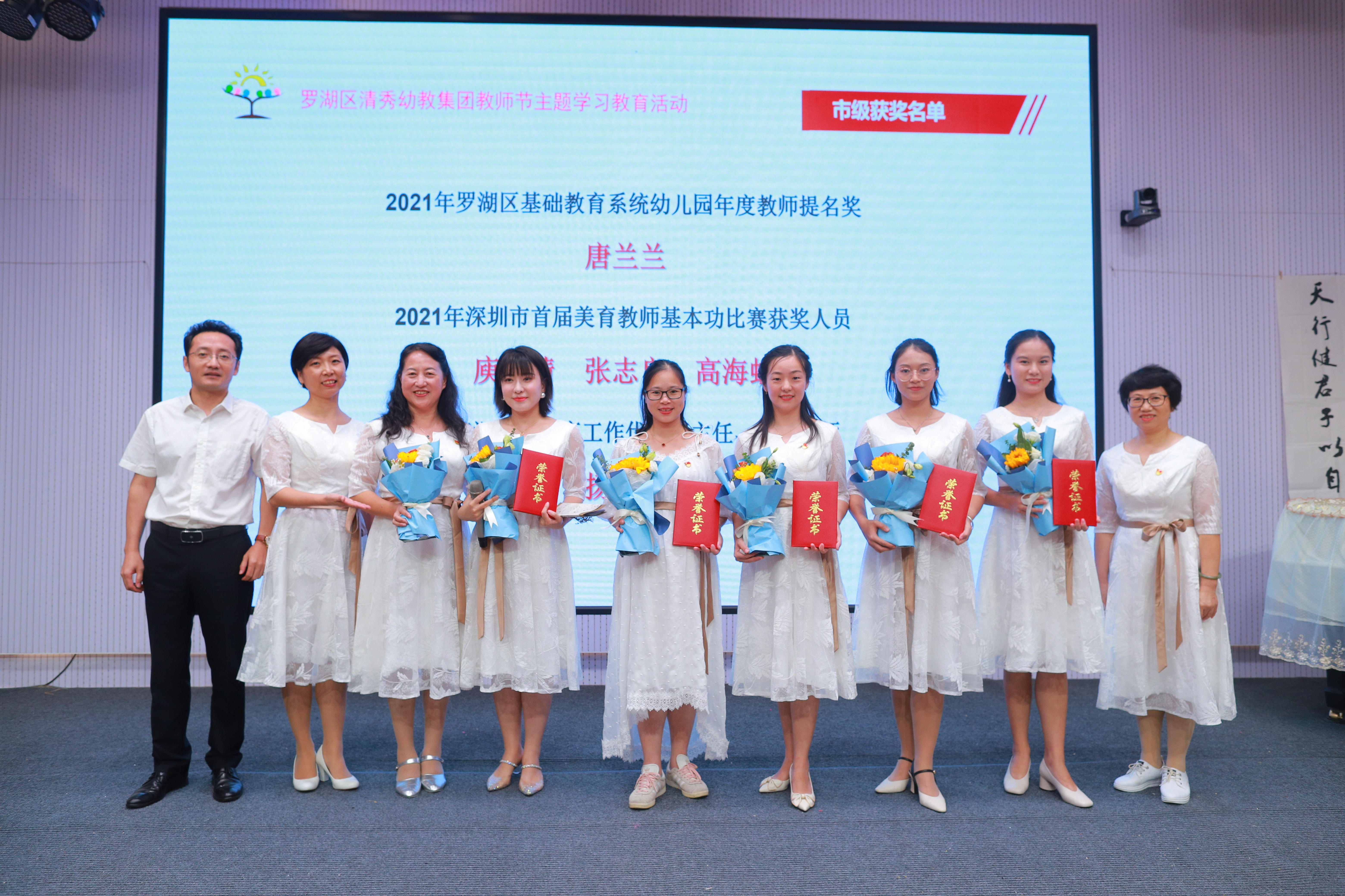 9月既是收获的季节,也是令教师们感动和骄傲的季节。主会场上,园长与教师代表倾情朗诵《温暖生命,滋养心灵——教育在清秀》祝福与勉励隔空传至各园。郭琼总园长在特殊的节日里,与大家共梳清秀发展和教师成长励志故事,勉励清秀人不忘初心,启智践行,一起好好做教育,做好好教育。