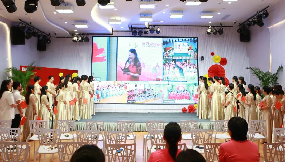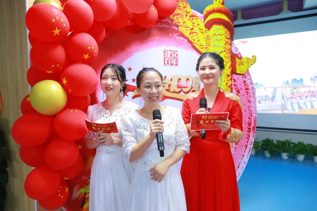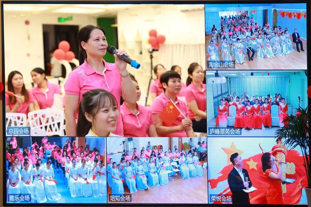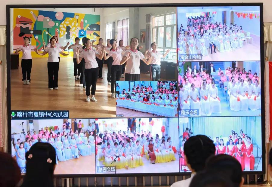 2021年9月30日,新中国成立72周年到来之际,罗湖区清秀幼教集团“6园1点”牵手新疆喀什夏镇中心幼儿园,近400名教职工借助全新的可视化互动设备,通过“云端连线”、演唱红歌、情境再现、互动答题、观看短片、演绎英雄和杰出人物代表等丰富多彩的方式,开展以“传承红色基因,根植家国情怀”为主题的国庆节庆祝活动,献礼新中国72周年华诞。