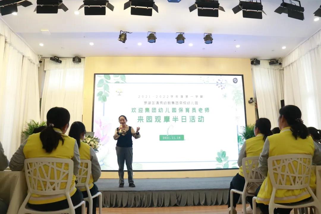 为加强集团内部交流,促进荣悦幼儿园“看见儿童”的一日生活经验的辐射、推广,提高集团行政、教师、后勤人员“三支”队伍的课程意识,2021年11月17-18日,在幼有善育”鹏城论坛第三期论坛活动“看见儿童”的一日生活完美收官后,集团组织五园一教学点的教师、保健组长、保育员到荣悦现场观摩学习和研讨。各园人员参访热情高涨、思考研讨投入,大家从整体环境、材料使用、支架儿童等方面的内容进行研讨、拓展和延伸论坛的实践经验,希望以此次观摩学习为契机,将荣悦园一日生活经验辐射到各园,内化于心,外化于行,促进大家的共同学习和成长, 整体推动、提升集团幼儿园保教质量。