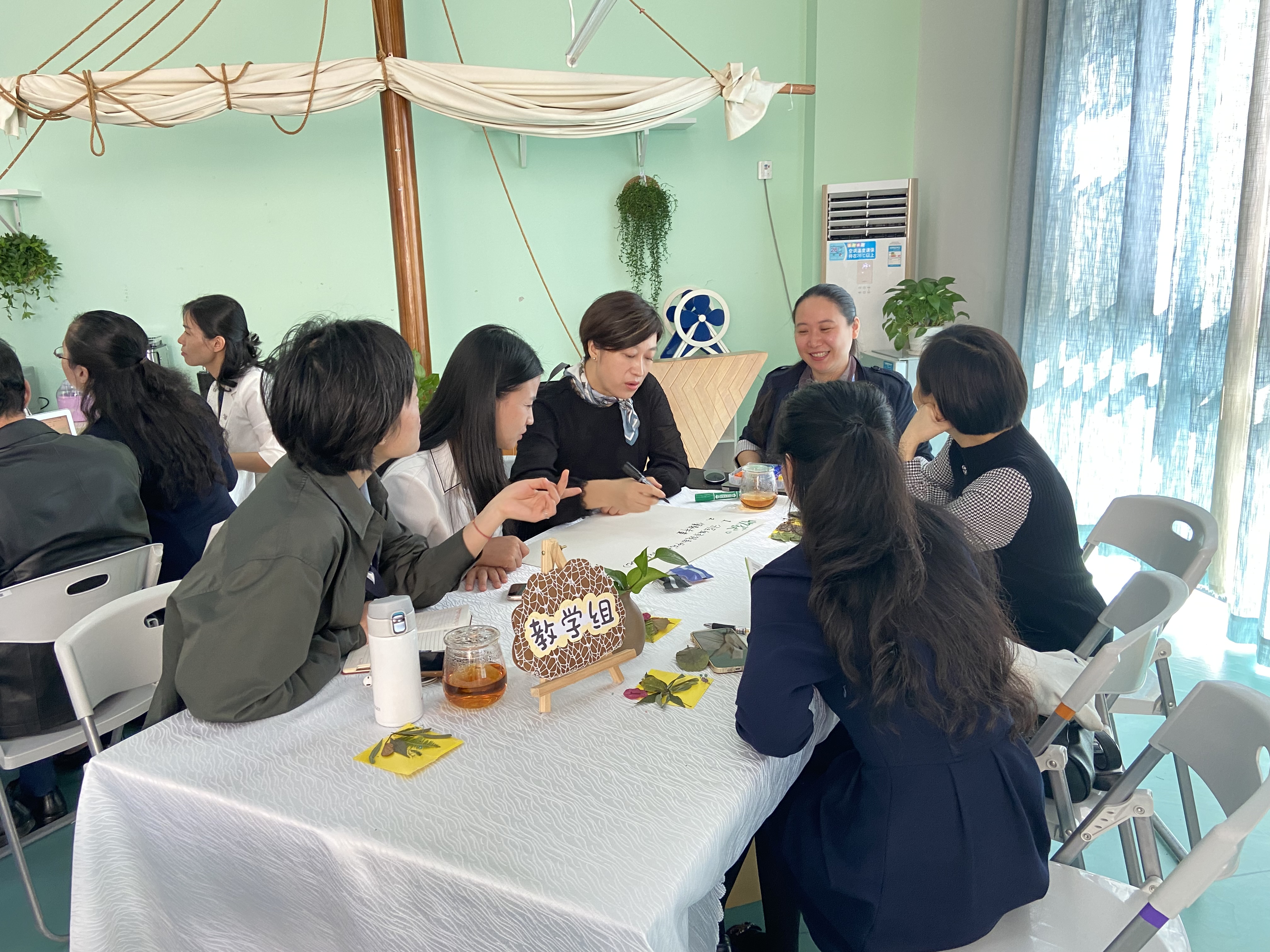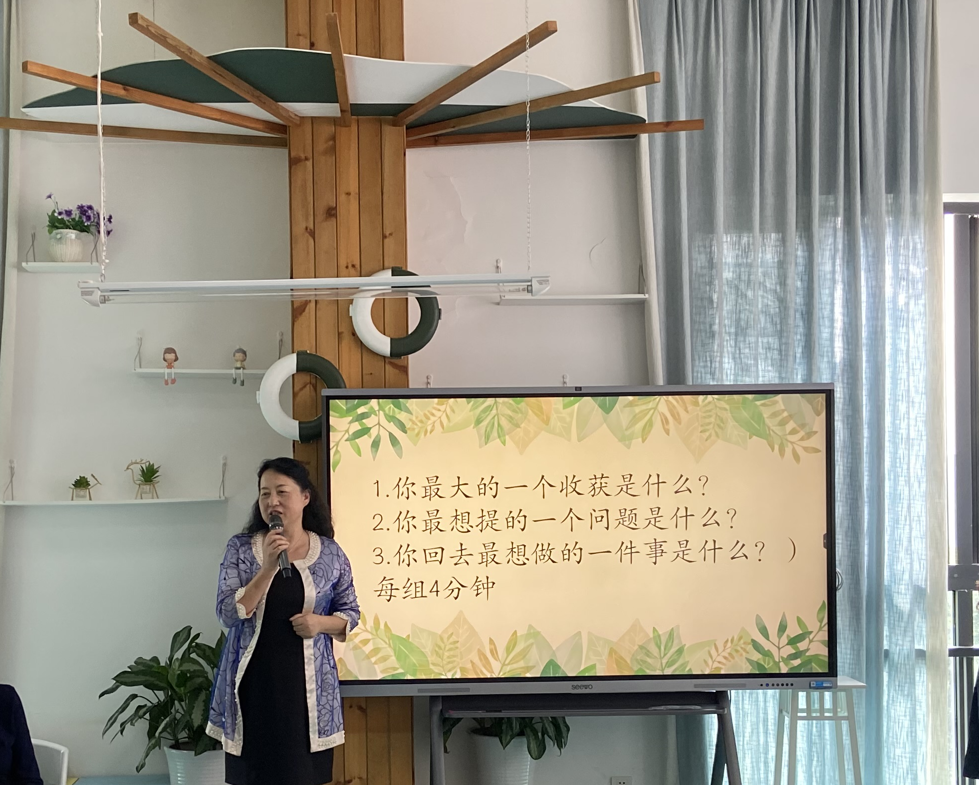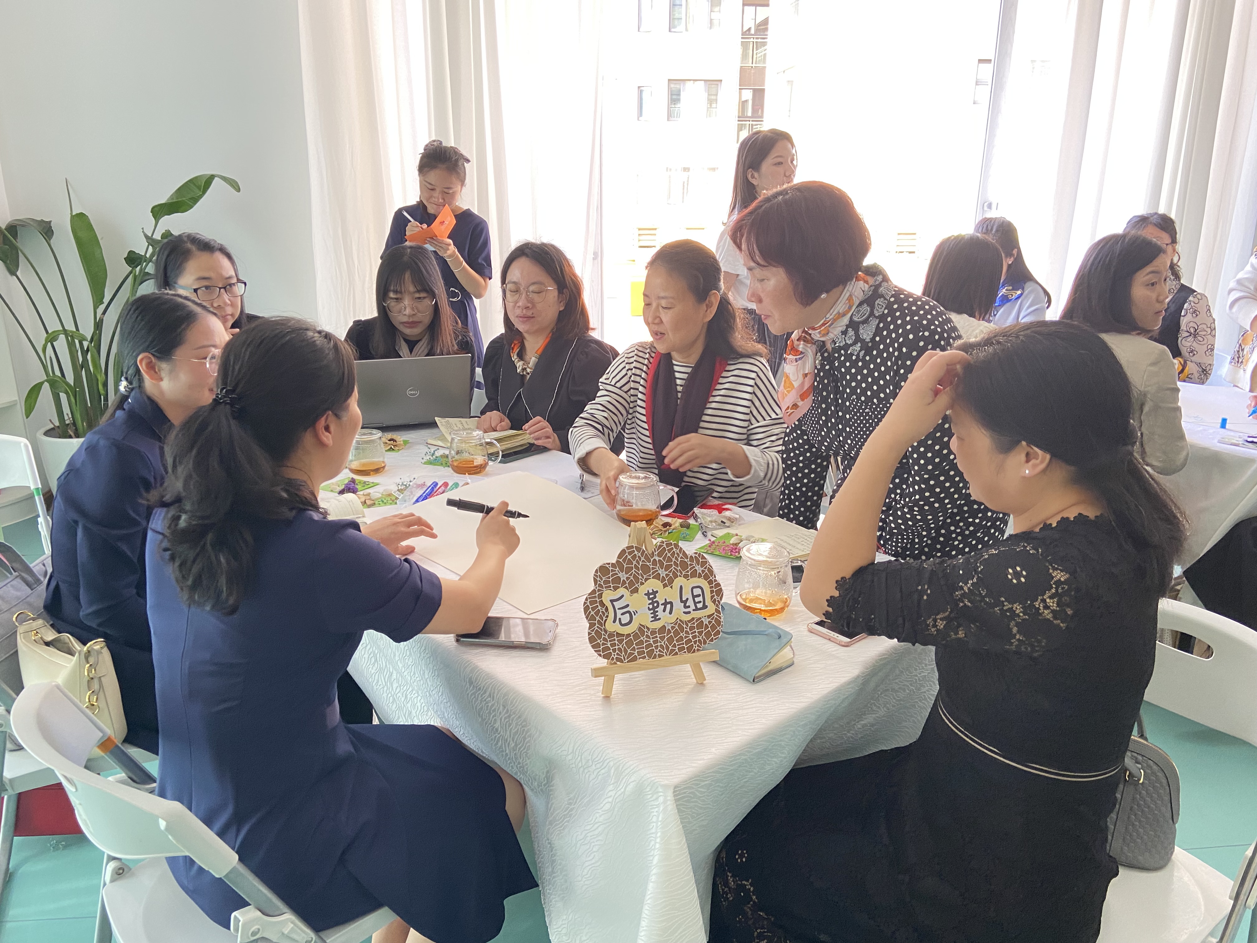 季园长以过程性质量检测为抓手、以研究思维为工具、分别从点、线、面、体四个维度诠释了队伍发展的整体思路,并从制定“教师个人发展规划”案例切入,提出了“营造民主和谐氛围、增强内在动力、教科研推动专业发展”的三个保教队伍专业成长策略;教学负责人杨副园长及后勤负责人付主任围绕“引领队伍成长”的主题,分别结合“数学区材料的研究”和“进餐环节”的案例,分享了运用过程性质量监测后的问题清单聚焦真问题,从而采用不同教研形式促进教师和保育员专业成长、制定实施保教人员专项培训计划的实践过程。经过20分钟的小组讨论与交流,以“园长、教学、后勤、教研”力量,组成的“四支”队伍,结合分享内容,总结收获、提出困惑、勠力行动。