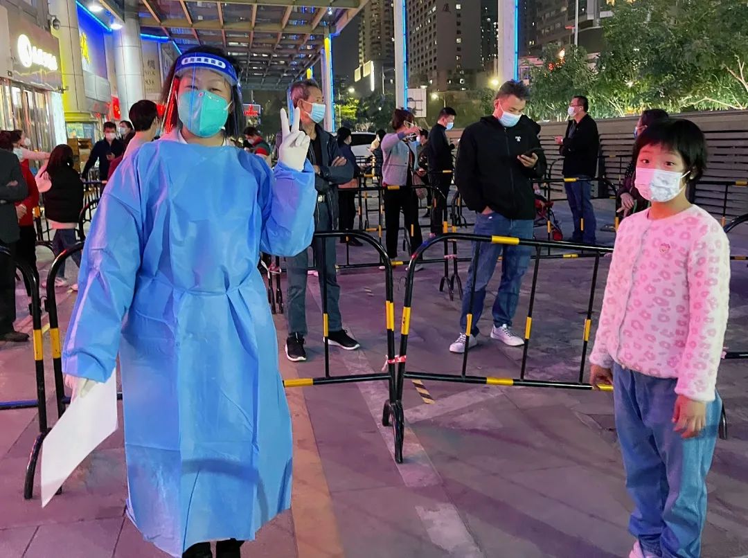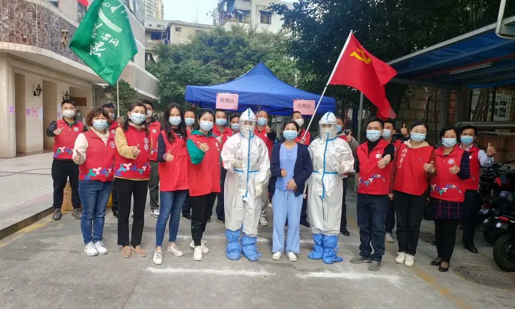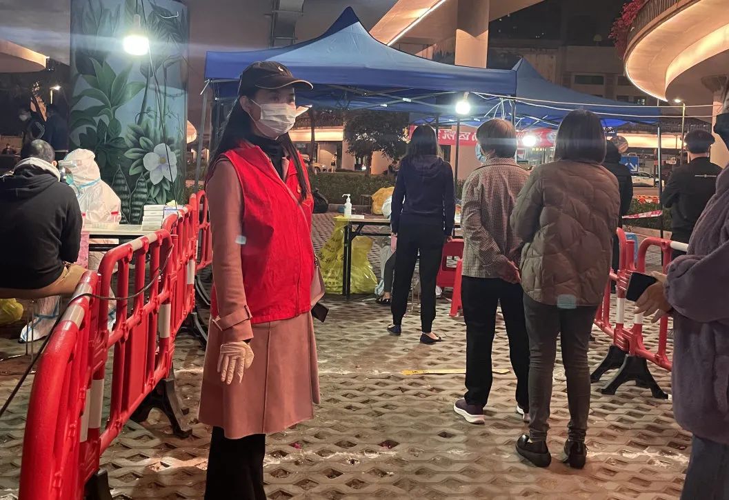 在社区最需要的地方,在形势严峻的管控区,党员、领导干部先行,局领导靠前指挥,集团领导带头奋战,各执行园长冲锋在前。志愿者教师下沉莲塘、东门、翠竹、清水河等街道,或是协助核酸检测点进行扫码、秩序维护,或是深入社区进行“扫楼”,又或是走进社区工作站进行大数据排查和流调工作,大家卯足干劲、齐心协力,势要切断病毒在深圳的传播链条。