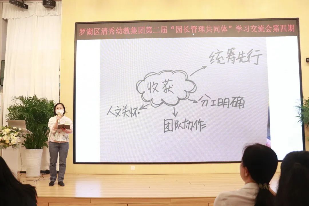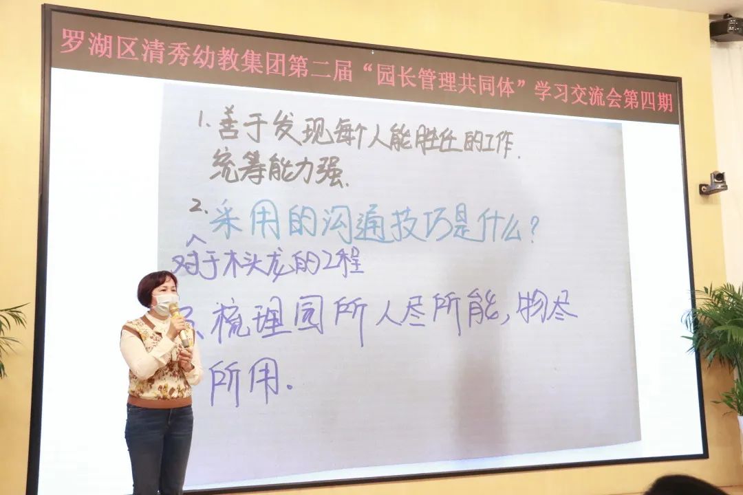 执行园长组成员表示,在管理的过程中统一思想、全面统筹是至关重要的,并从领导力、社交力、凝聚力、理解力出发,分享小组成员在发现团队闪光点,以人为本,有效调适方面的收获。