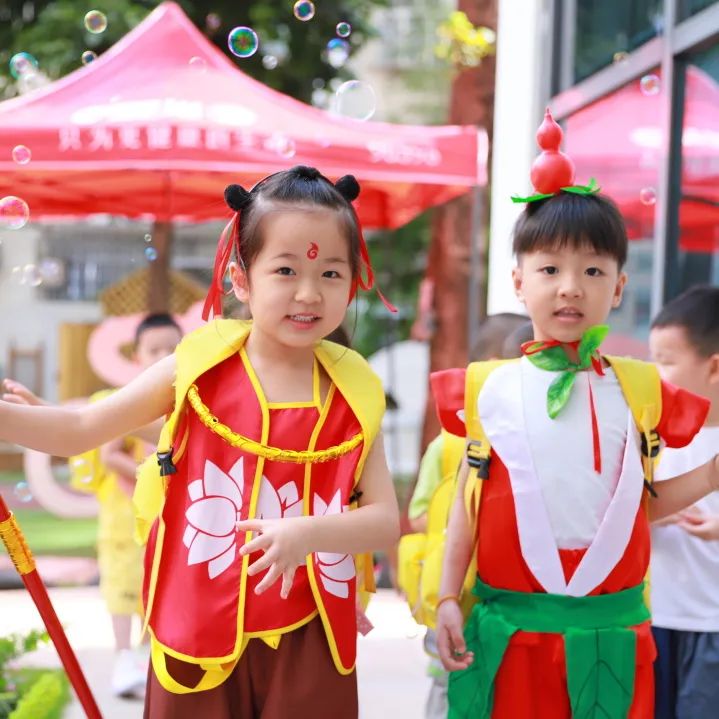 清秀总园里闪现着唐僧、悟空、八戒、哪吒、白娘子、葫芦娃、二郎神、诸葛亮等诸多人物。孩子们和老师一起cosplay各经典动画、动漫中的人物角色,并通过T台走秀展现自我及人物形象,投票观看人气最高动画影片等方式迎接属于自己的儿童节。