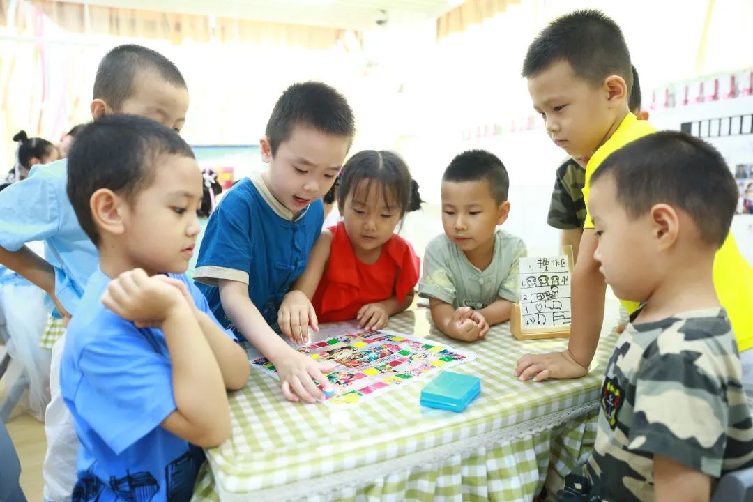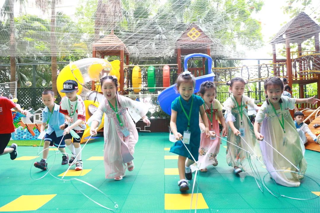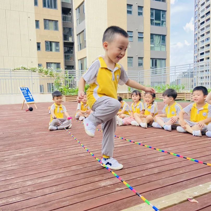 为欢度孩子们的节日,培知园里特设了各类民间游戏摊位。跳房子、抢椅子、跳绳、摆摊……各班幼儿错峰错时段在老师的组织下到不同摊位游戏点体验经典游戏的欢乐。