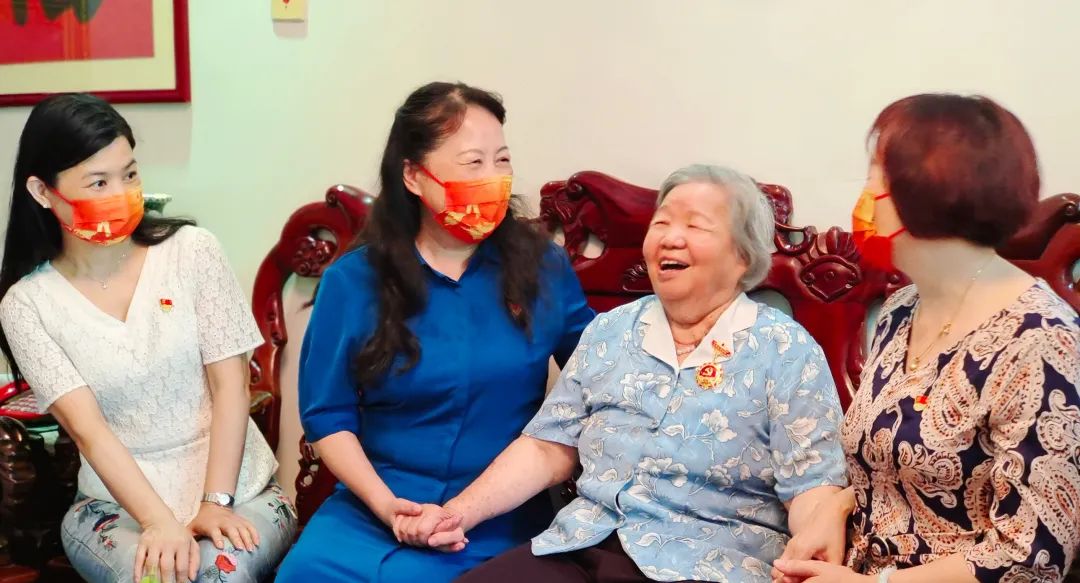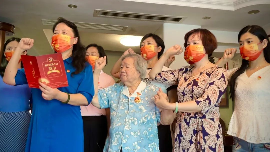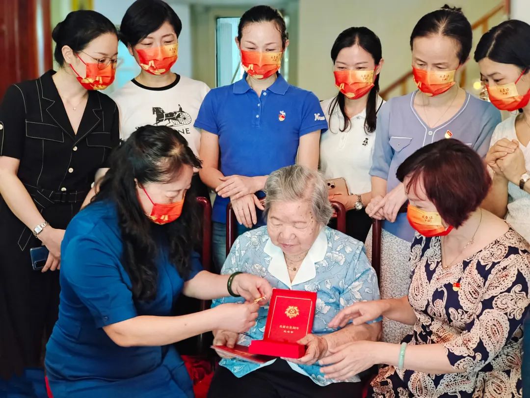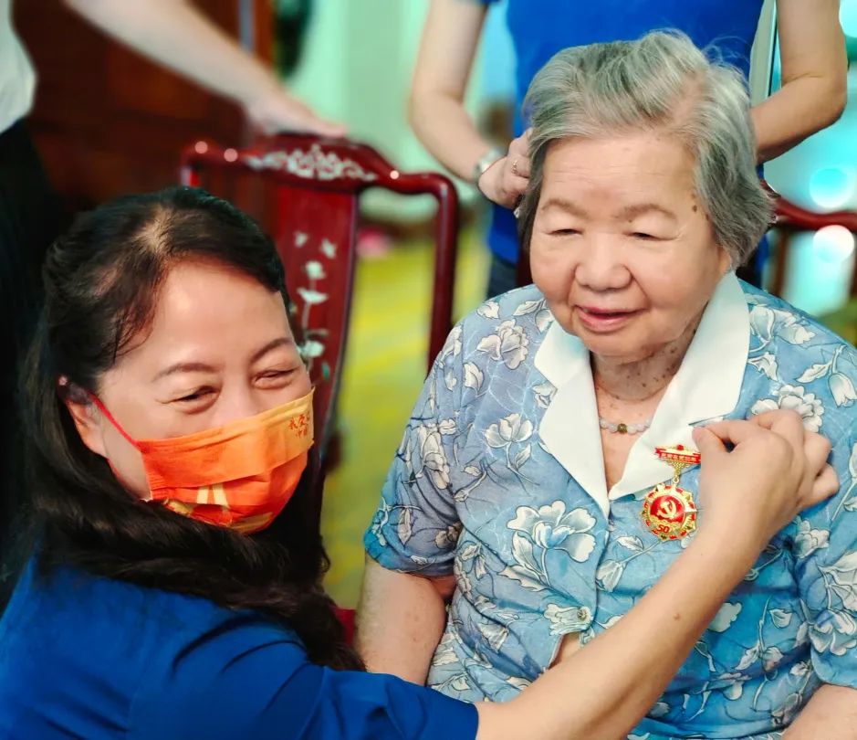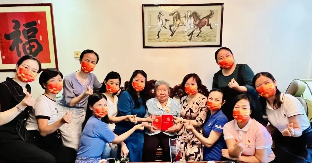 2022年6月27日,在清秀幼教集团党支部书记郭琼同志的带领下,集团执行园长及支部党员代表一行前往老党员叶巧如家中举行“光荣在党50年”纪念奖章颁发仪式,向伟大的中国共产党成立101周年深情献礼,向为党和国家教育事业作出重要贡献的老园长诚挚致敬。