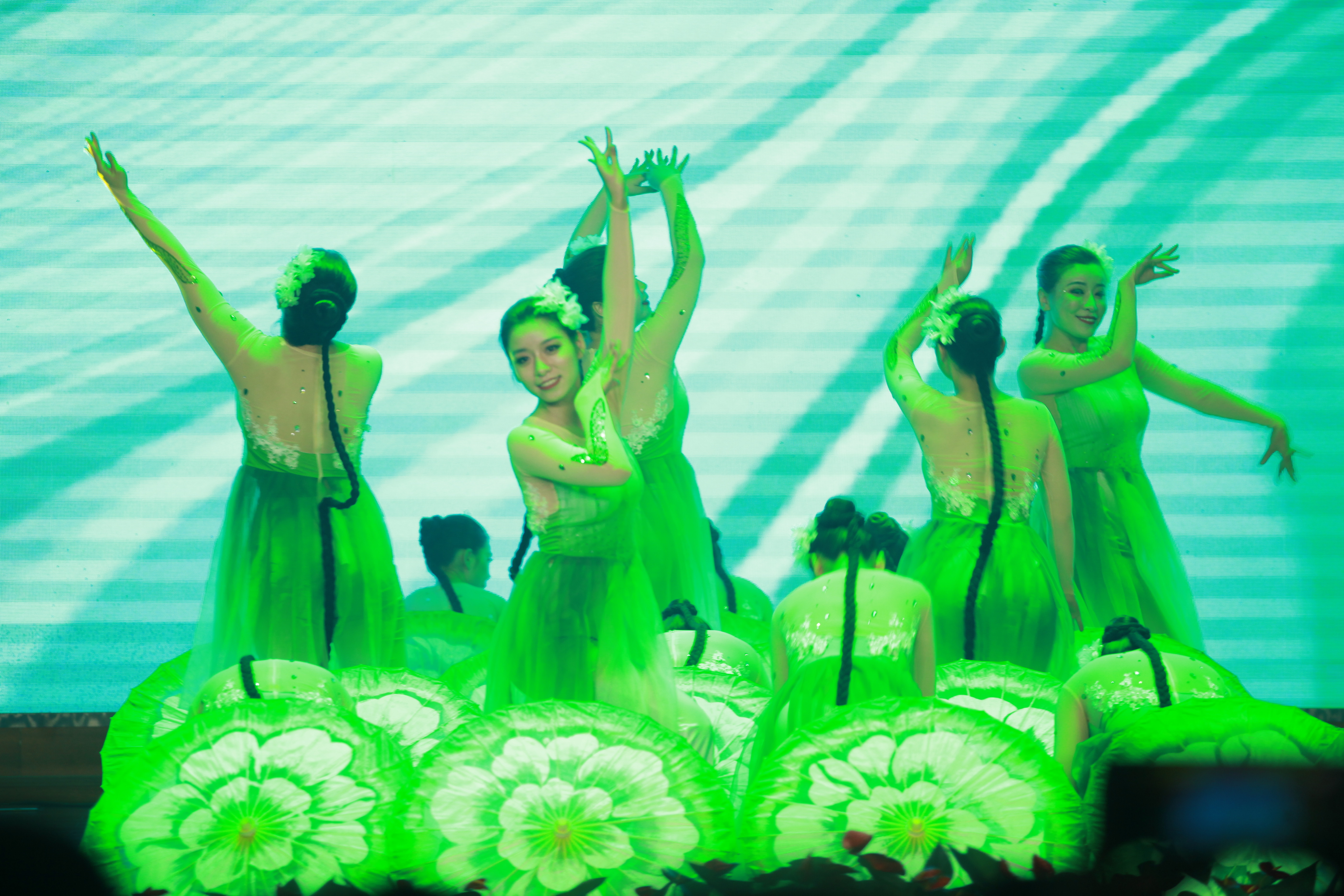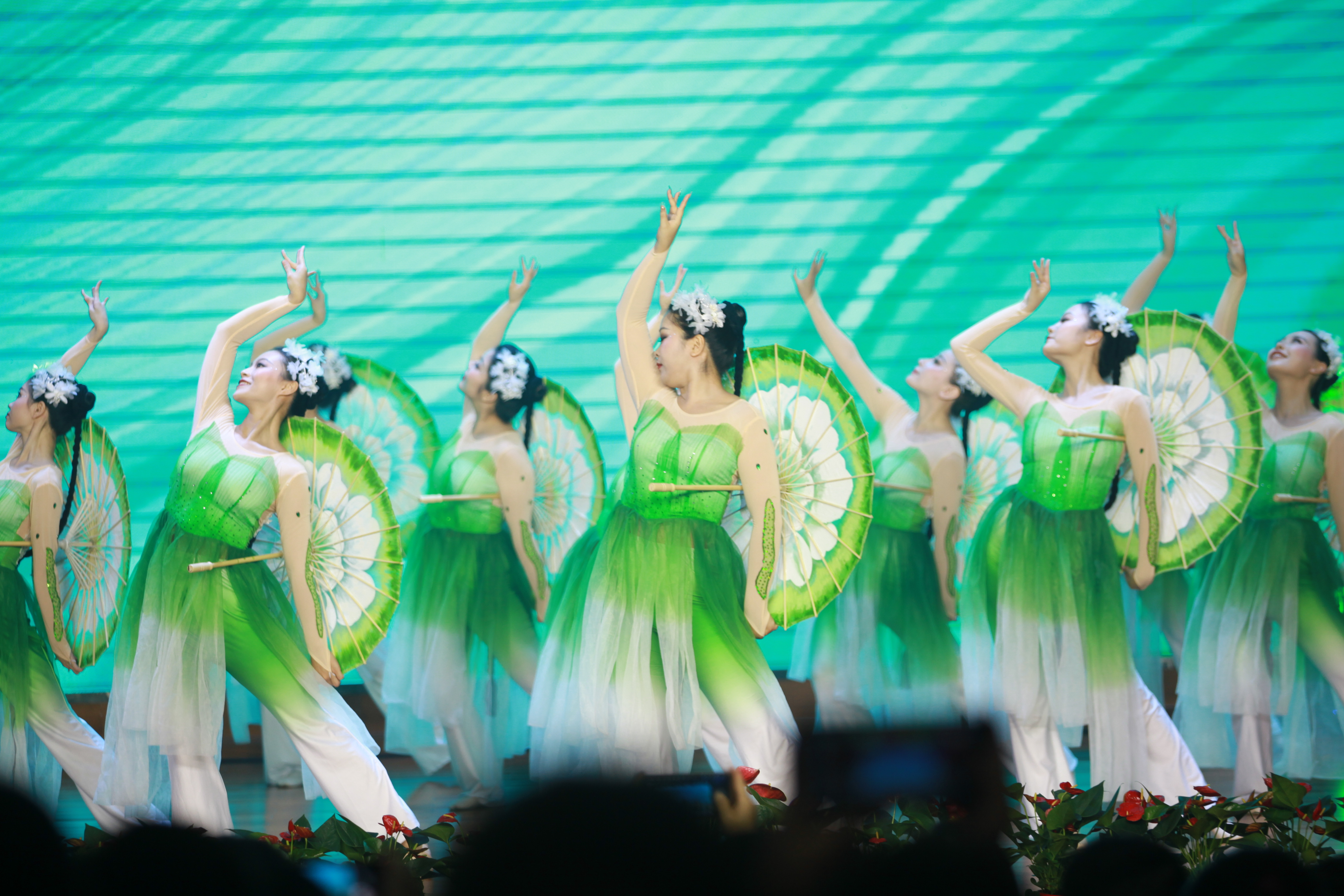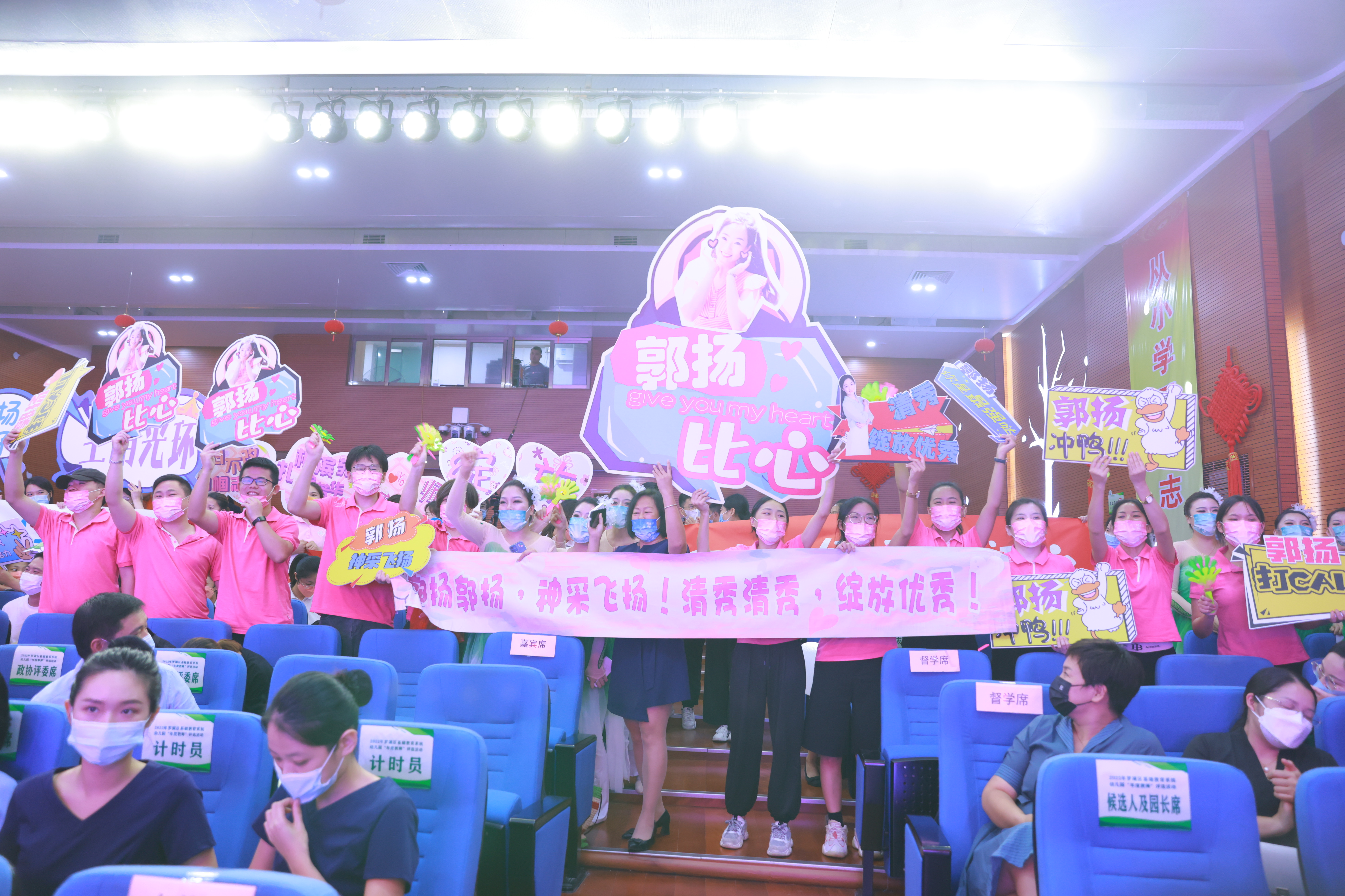 此外,清秀幼教集团还承担了本次活动的开场舞,茉莉花开氤氲芬芳,由我集团2019年区幼儿园“年度教师”获得者王姗姗、2021年区幼儿园“年度教师”提名奖获得者唐兰兰、2021年省首届美育教师教学基本功比赛(幼儿园)二等奖获得者庾楚晴等14名专业与颜值并存的清秀教师组成的舞蹈队,以淡雅清新、轻灵飘逸的国风国韵舞蹈《清清茉莉》开启了这场实力碰撞的总决赛。集团现场与线下拉拉队与8园1点610多名教职工云端相聚,齐心协力为郭扬老师摇旗呐喊。