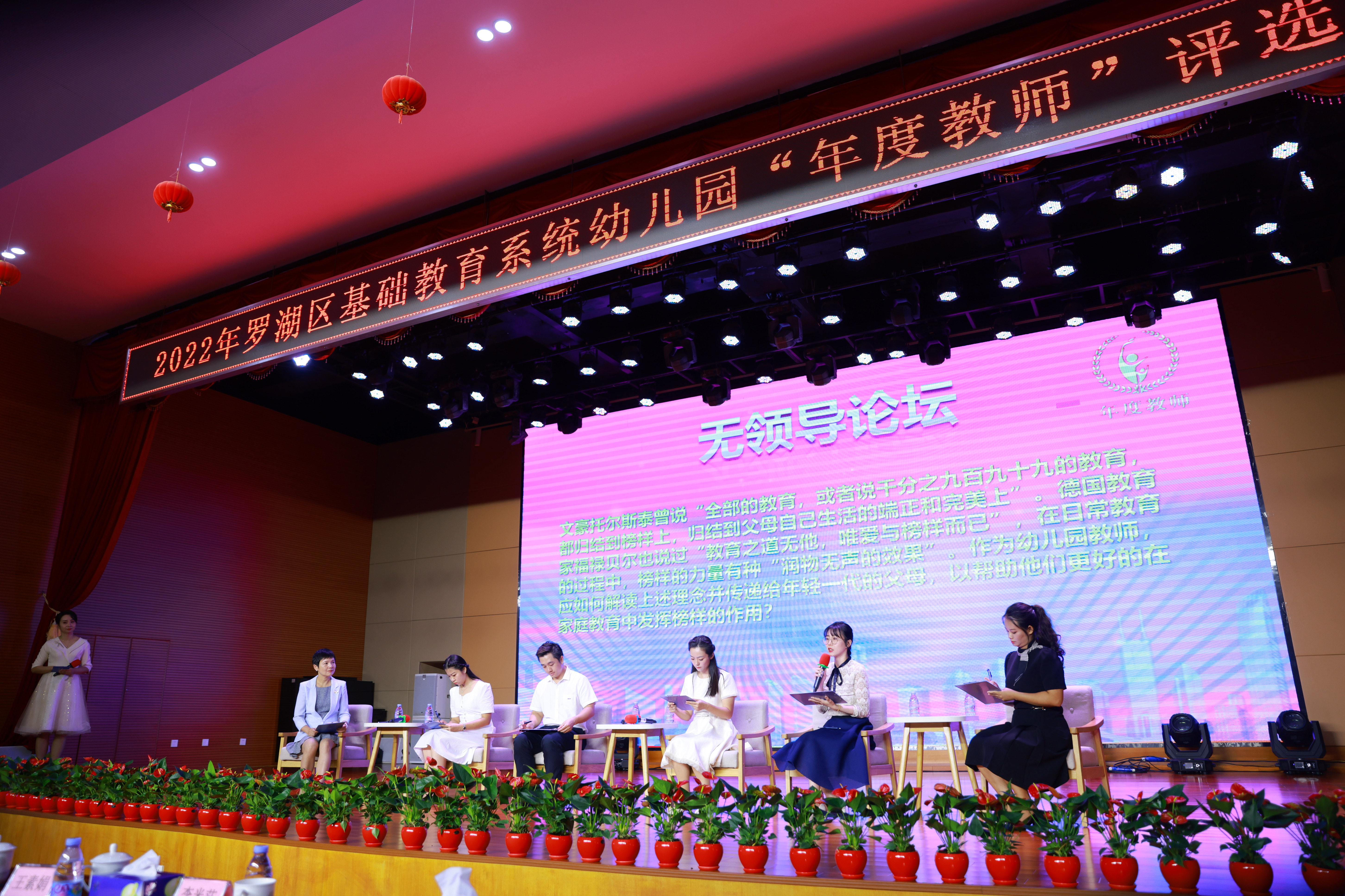 为树标杆、新榜样,引导广大教育工作者争做“四有”好老师和“四个引路人”,弘扬传播教育系统的正能量,2022年8月26日,2022年罗湖区基础教育系统幼儿园“年度教师”决赛在深圳市锦田小学成功举办,并于线上开启同步直播,在线观看人数超过56万人次。